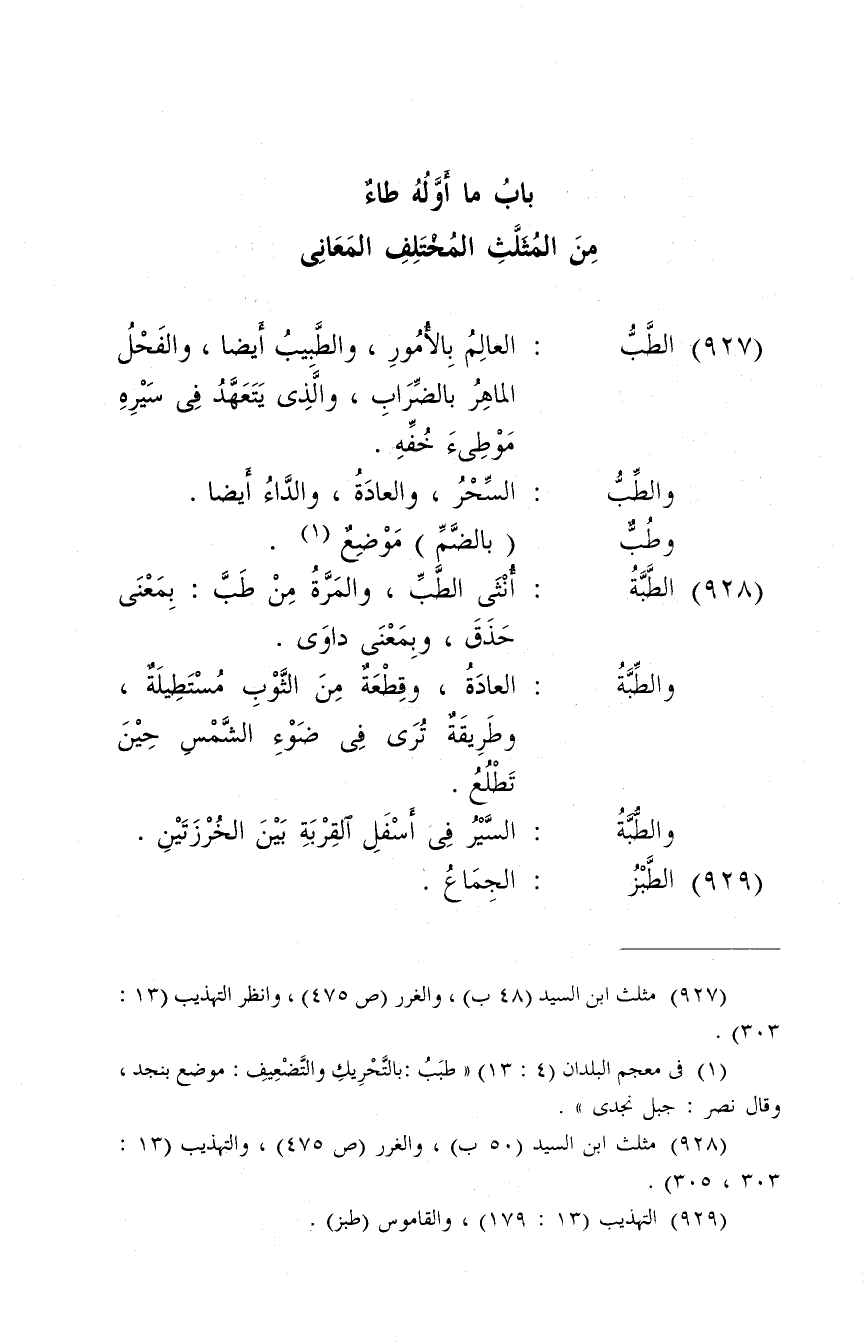 بَاب مَا أَوله طاء من المثلث الْمُخْتَلف الْمعَانِي