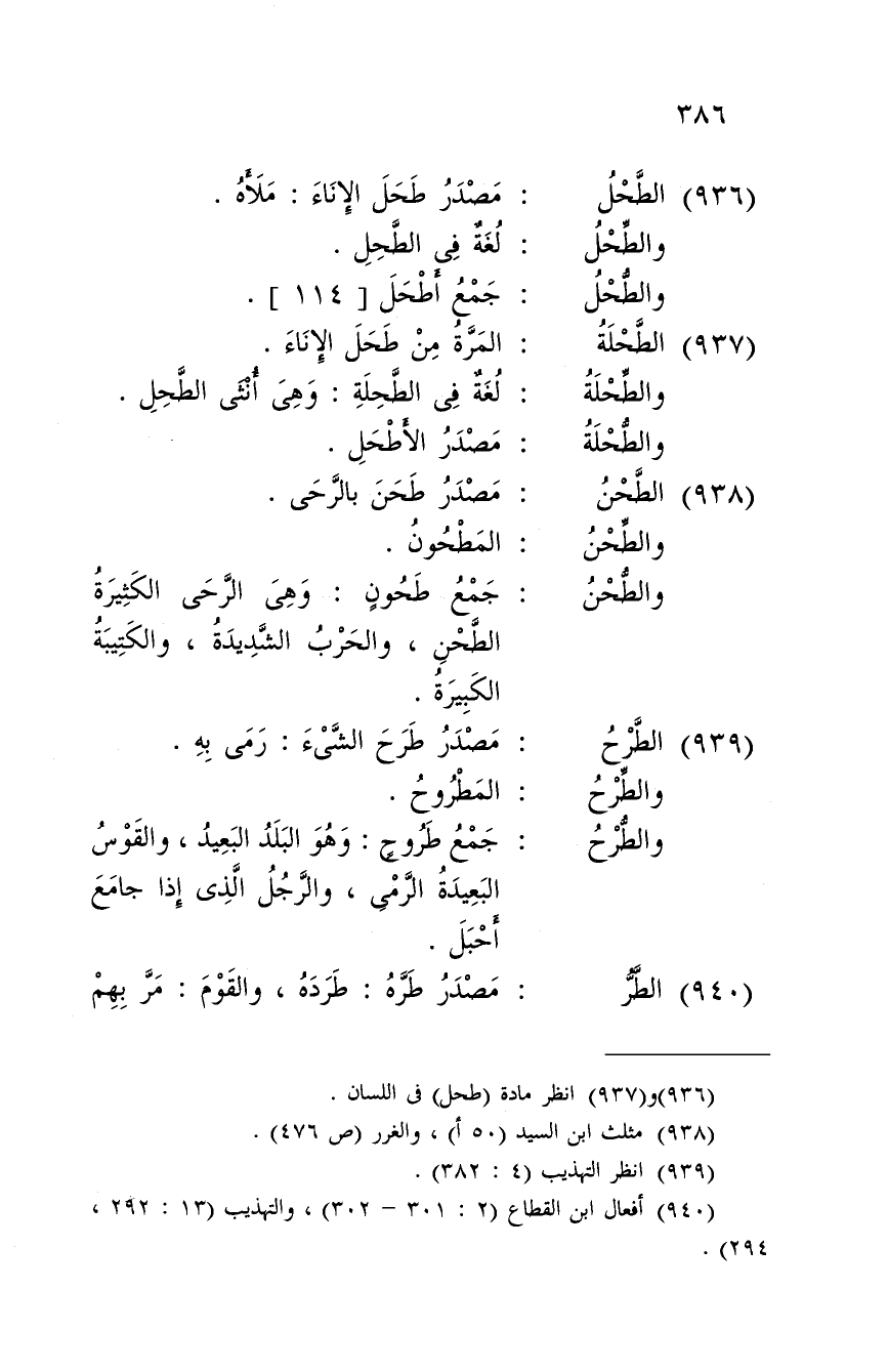 مصدر طحل الْإِنَاء: ملأَهُ.