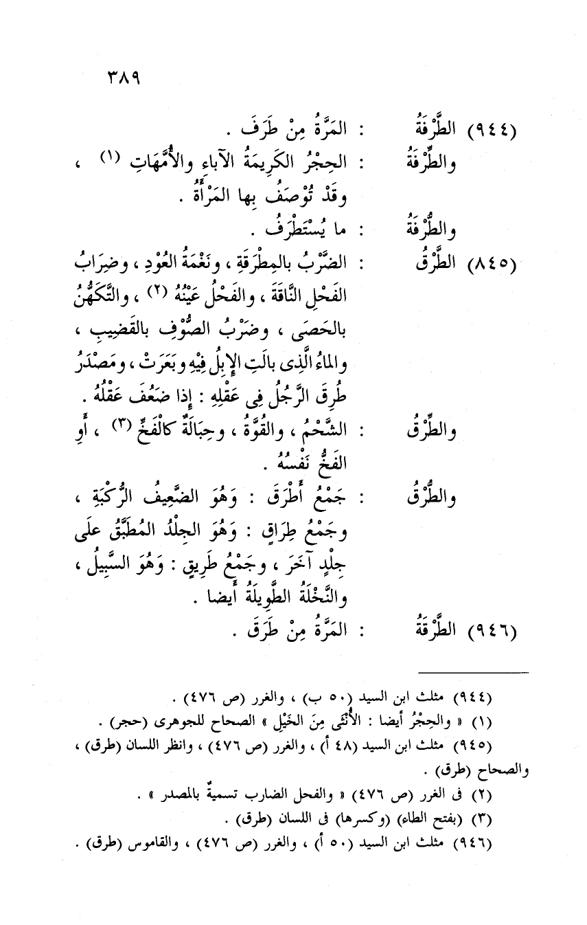 جمع أطرق: وَهُوَ الضَّعِيف الرّكْبَة، وَجمع طراق: وَهُوَ الْجلد المطبق على جلد آخر، وَجمع طَرِيق: وَهُوَ السَّبِيل، والنخلة الطَّوِيلَة أَيْضا.