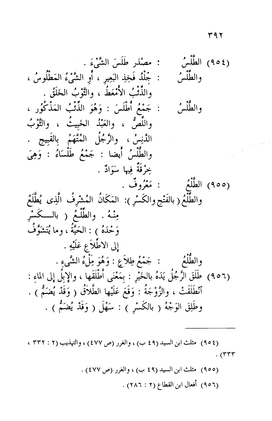 جمع أطلس: وَهُوَ الذِّئْب الْمَذْكُور، واللص، وَالْعَبْد الْخَبيث، وَالثَّوْب الدنس، وَالرجل الْمُتَّهم بالقبيح. والطلس أَيْضا: جمع طلساء: وَهِي خرقَة فِيهَا سَواد.