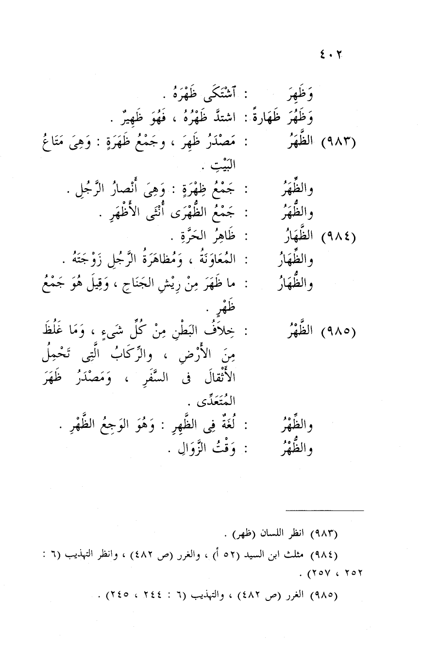 مصدر ظهر، وَجمع ظهرة: وَهِي مَتَاع الْبَيْت.