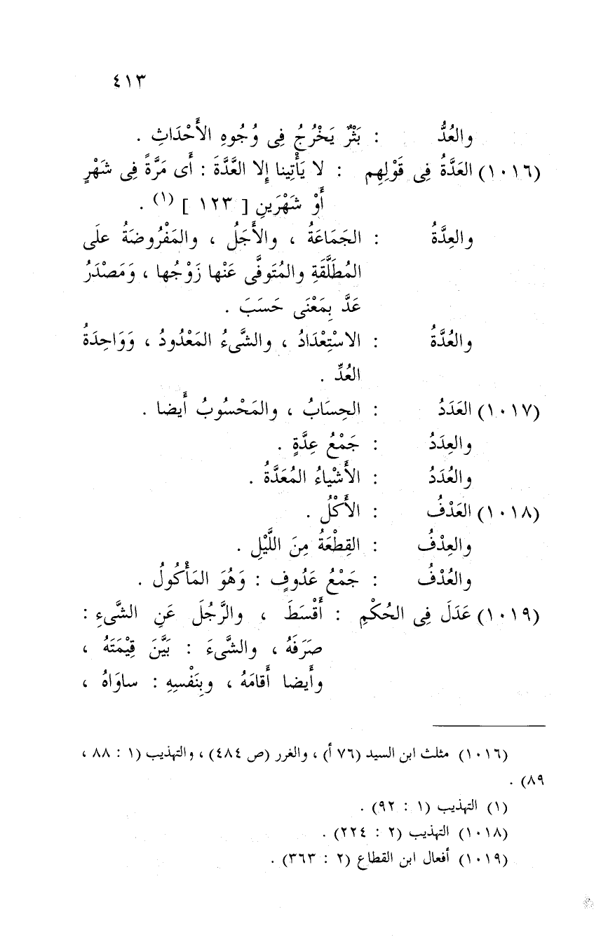 الْجَمَاعَة، وَالْأَجَل، والمفروضة على الْمُطلقَة والمتوفى عَنْهَا زَوجهَا، ومصدر عد بِمَعْنى حسب.