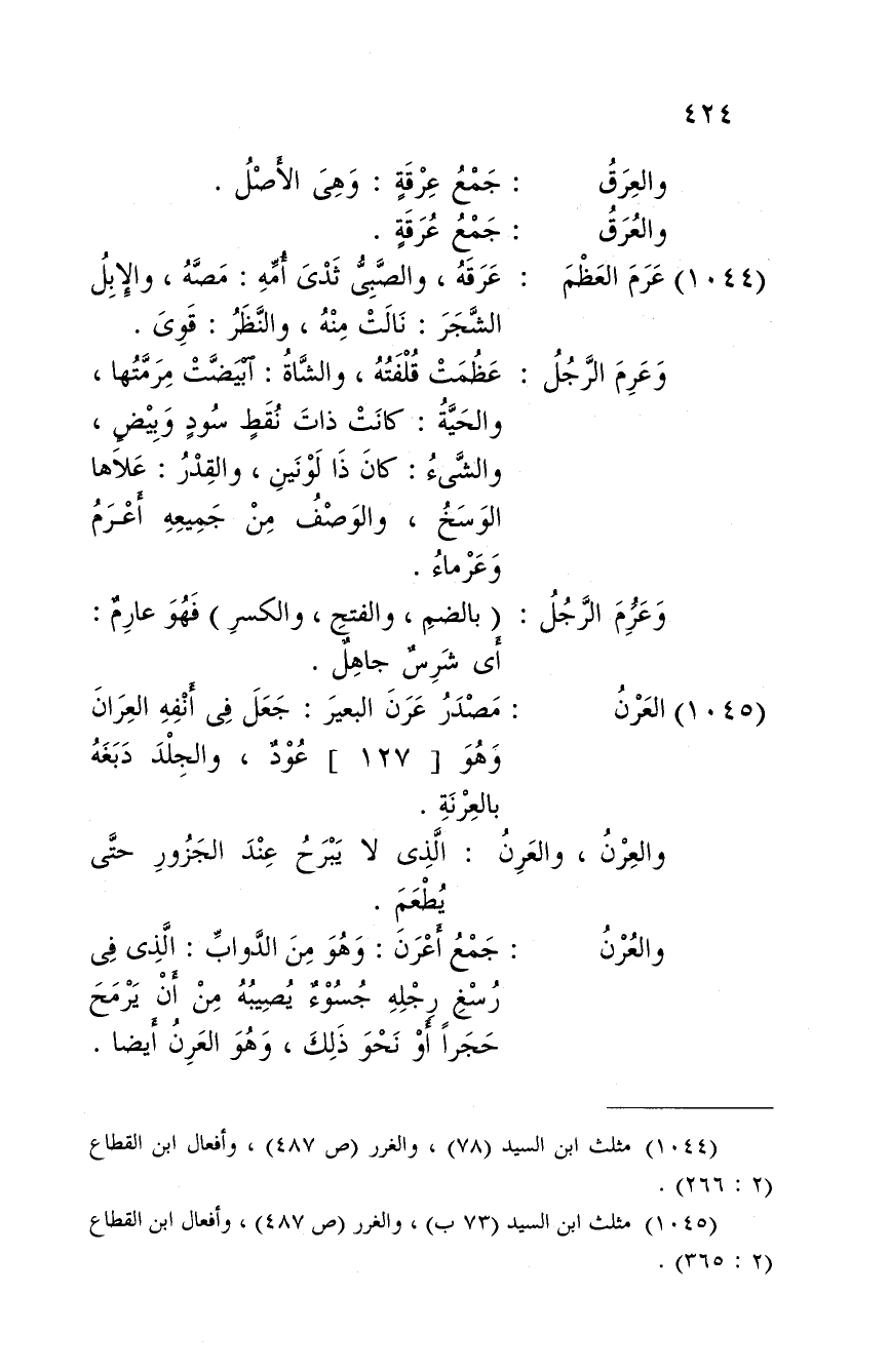 وعرم الرجل: عظمت قلفته، وَالشَّاة: ابْيَضَّتْ مرمتها، والحية: كَانَت ذَات نقط سود وبيض، وَالشَّيْء: كَانَ ذَا لونين، وَالْقدر: علاها الْوَسخ، وَالْوَصْف من جَمِيعه أعرم وعرماء.
