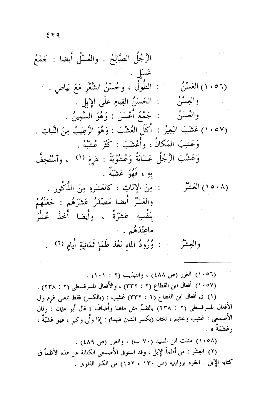 من الْإِنَاث، كالعشرة من الذُّكُور. وَالْعشر أَيْضا مصدر عشرهم: جعلهم بِنَفسِهِ عشرَة، وَأَيْضًا أَخذ عشر مَا عِنْدهم.