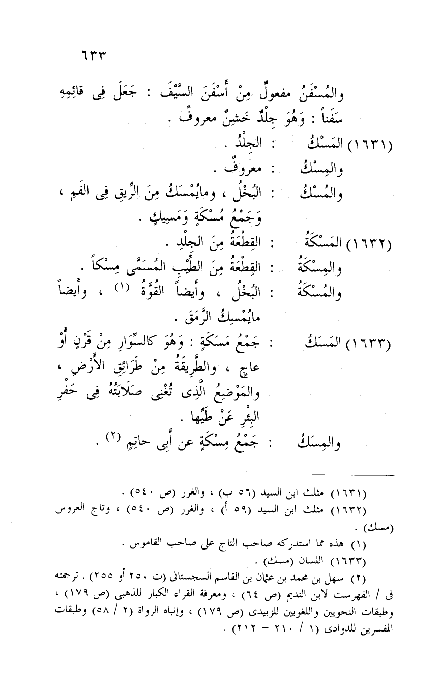 والمسفن مفعول من أسفن السَّيْف: جعل فِي قائمه سفنا: وَهُوَ جلد خشن مَعْرُوف.