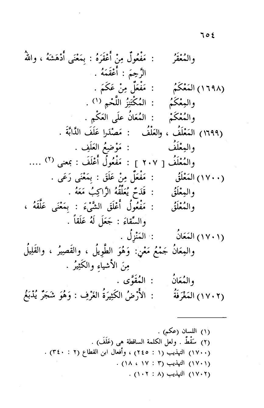 مفعول أعلق الشَّيْء: بِمَعْنى علقه، والسقاء: جعل لَهُ علقا.