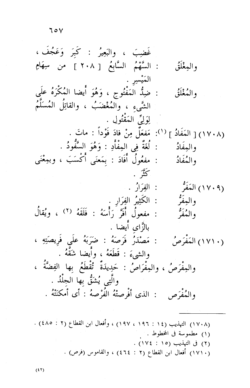 مفعول أَفَادَ: بِمَعْنى أكسب، وَبِمَعْنى كثر.
