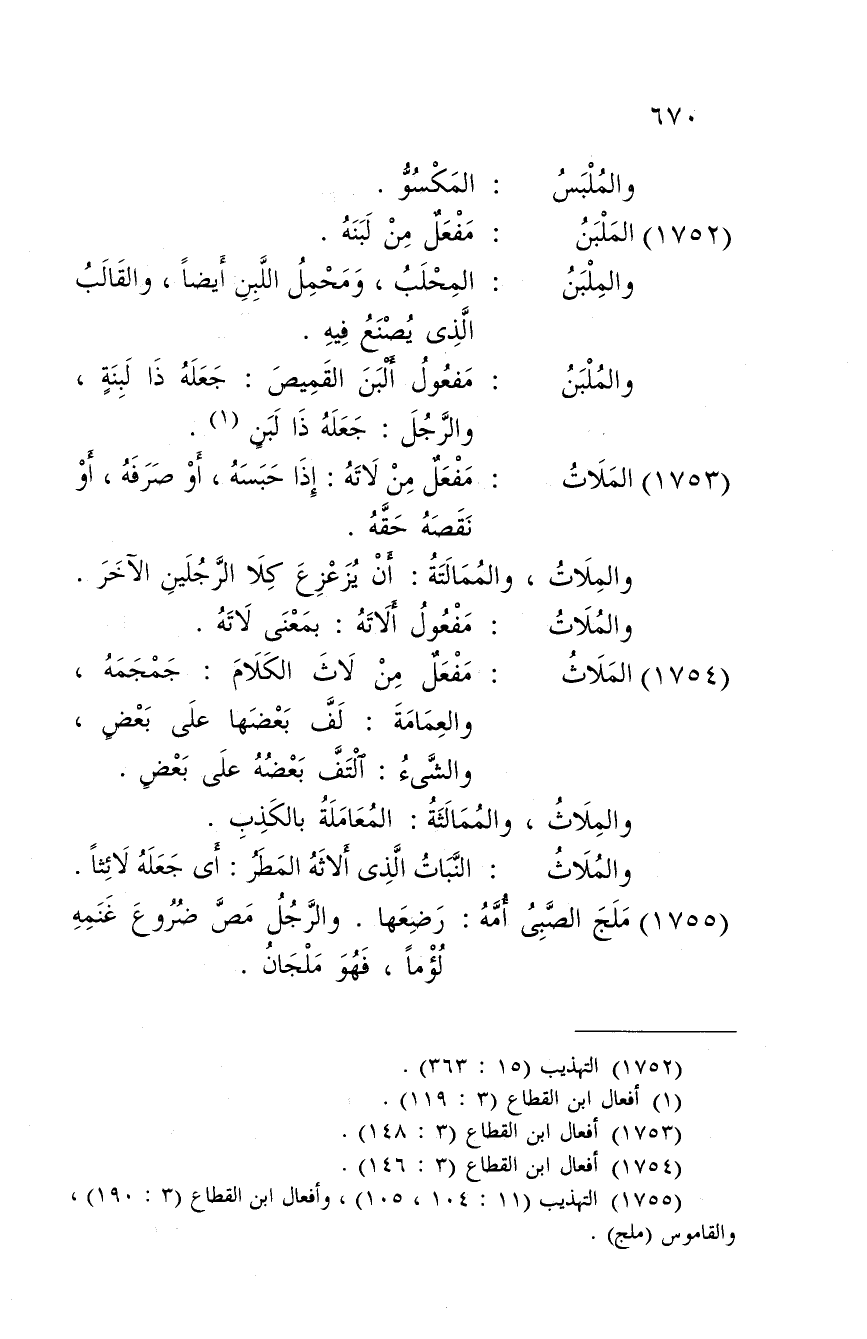 مفعل من لاته: إِذا حَبسه، أَو صرفه، أَو نَقصه حَقه.