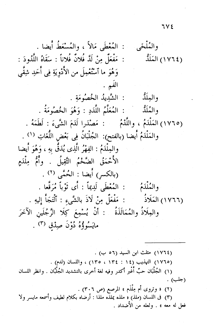 الجلبان فِي بعض اللُّغَات. والملدم