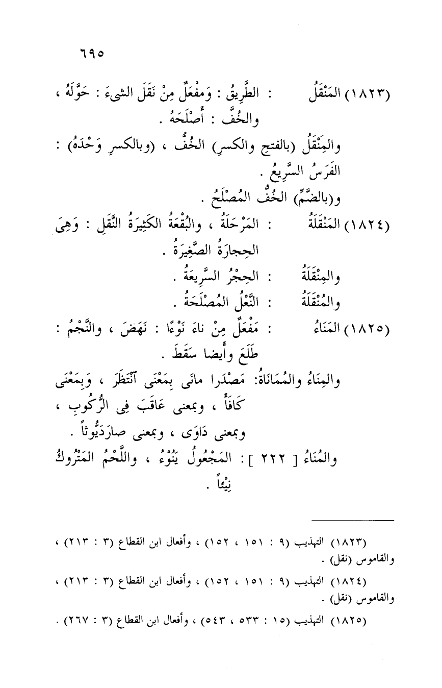 الطَّرِيق: ومفعل من نقل الشَّيْء: حوله، والخف: أصلحه.