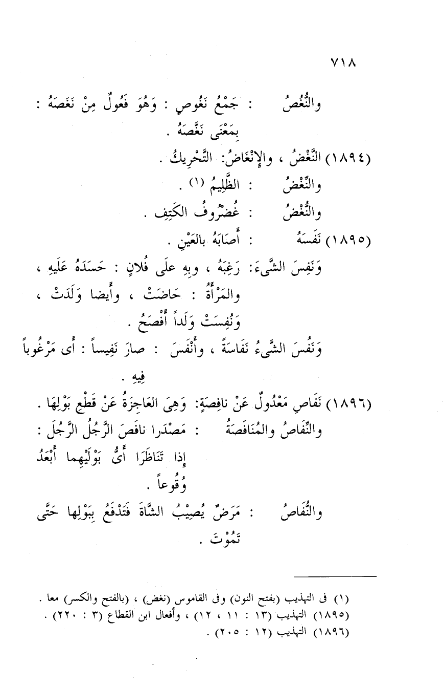 1896 - نفاص معدول عَن نافصة: وَهِي العاجزة عَن قطع بولها.