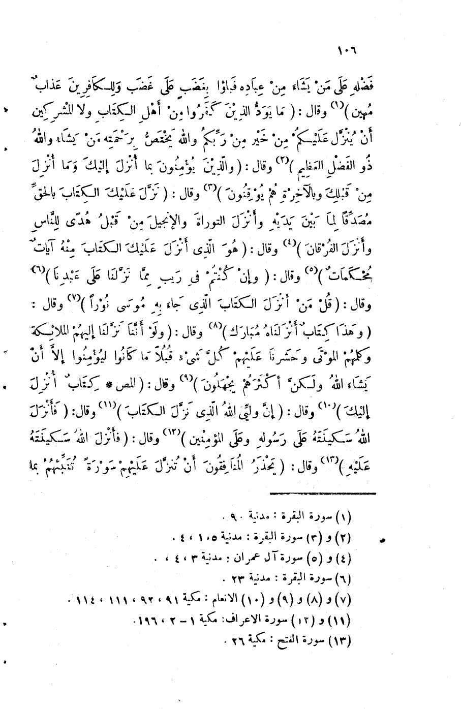 فَضله على من يَشَاء من عباده فباؤا بغضب على غضب وللكافرين عَذَاب مهين) وَقَالَ {مَا يود الَّذين كفرُوا من أهل الْكتاب وَلَا الْمُشْركين أَن ينزل عَلَيْكُم من خير من ربكُم وَالله يخْتَص برحمته من يَشَاء وَالله ذُو الْفضل الْعَظِيم} وَقَالَ {وَالَّذين يُؤمنُونَ بِمَا أنزل إِلَيْك وَمَا أنزل من قبلك وبالآخرة هم يوقنون} وَقَالَ {نزل عَلَيْك الْكتاب بِالْحَقِّ مُصدقا لما بَين يَدَيْهِ وَأنزل التَّوْرَاة وَالْإِنْجِيل من قبل هدى للنَّاس وَأنزل الْفرْقَان} وَقَالَ {هُوَ الَّذِي أنزل عَلَيْك الْكتاب مِنْهُ آيَات محكمات} وَقَالَ {وَإِن كُنْتُم فِي ريب مِمَّا نزلنَا على عَبدنَا} وَقَالَ {قل من أنزل الْكتاب الَّذِي جَاءَ بِهِ مُوسَى نورا} وَقَالَ هَذَا كتاب أَنزَلْنَاهُ مبارك وَقَالَ وَلَو أننا نزلنَا إِلَيْهِم الْمَلَائِكَة وكلمهم الْمَوْتَى وحشرنا عَلَيْهِم كل شَيْء قبلا مَا كَانُوا ليؤمنوا إِلَّا أَن يَشَاء الله وَلَكِن أَكْثَرهم يجهلون وَقَالَ {المص كتاب أنزل إِلَيْك} وَقَالَ {إِن وليي الله الَّذِي نزل الْكتاب} وَقَالَ {فَأنْزل الله سكينته على رَسُوله وعَلى الْمُؤمنِينَ} وَقَالَ {فَأنْزل الله سكينته عَلَيْهِ} وَقَالَ يحذر المُنَافِقُونَ أَن تنزل عَلَيْهِم سُورَة تنبئهم بِمَا