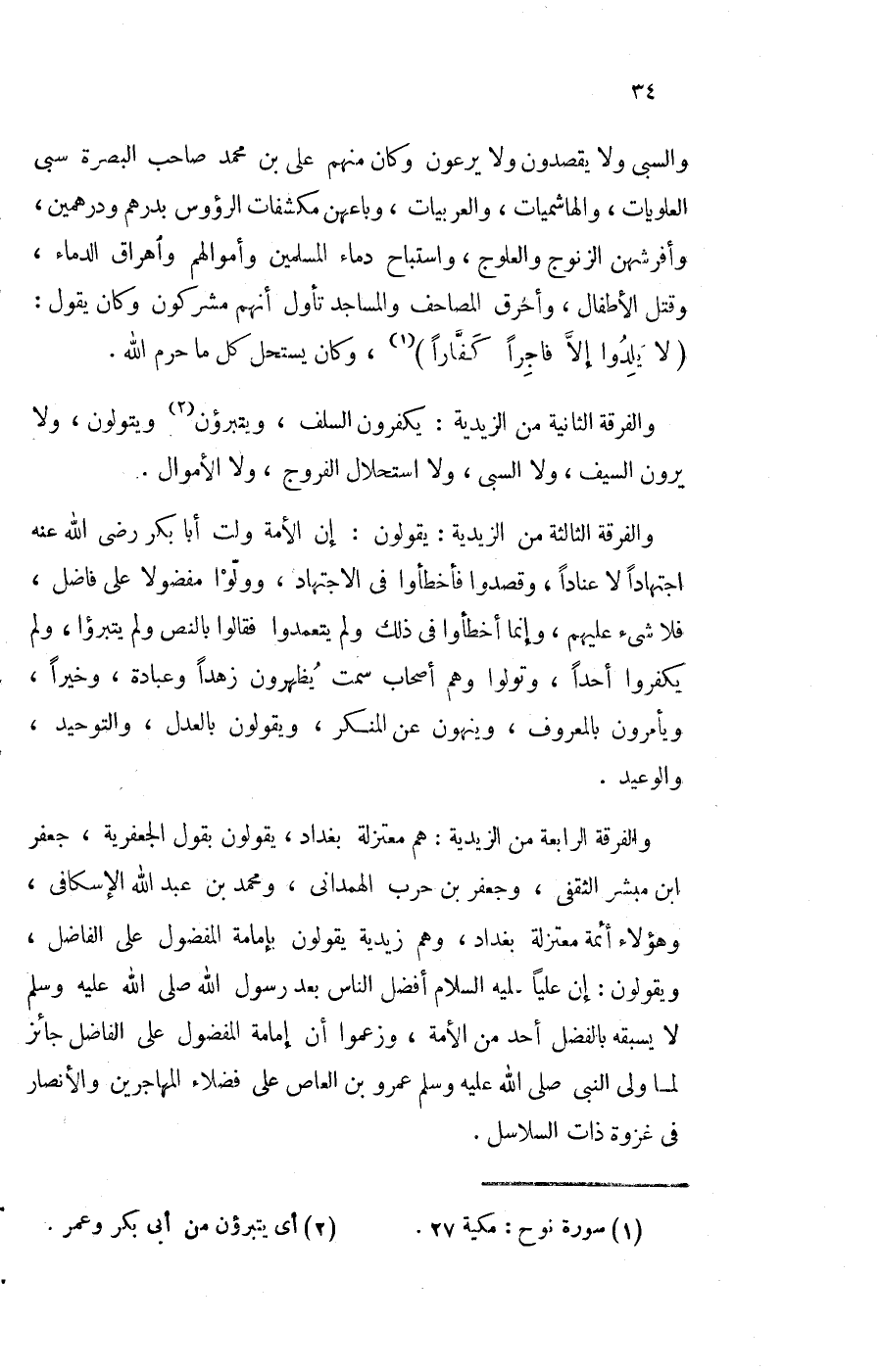 والفرقة الثَّانِيَة من الزيدية يكفرون السّلف ويتبرؤن ويتولون وَلَا يرَوْنَ السَّيْف وَلَا السَّبي وَلَا استحلال الْفروج وَلَا الْأَمْوَال
