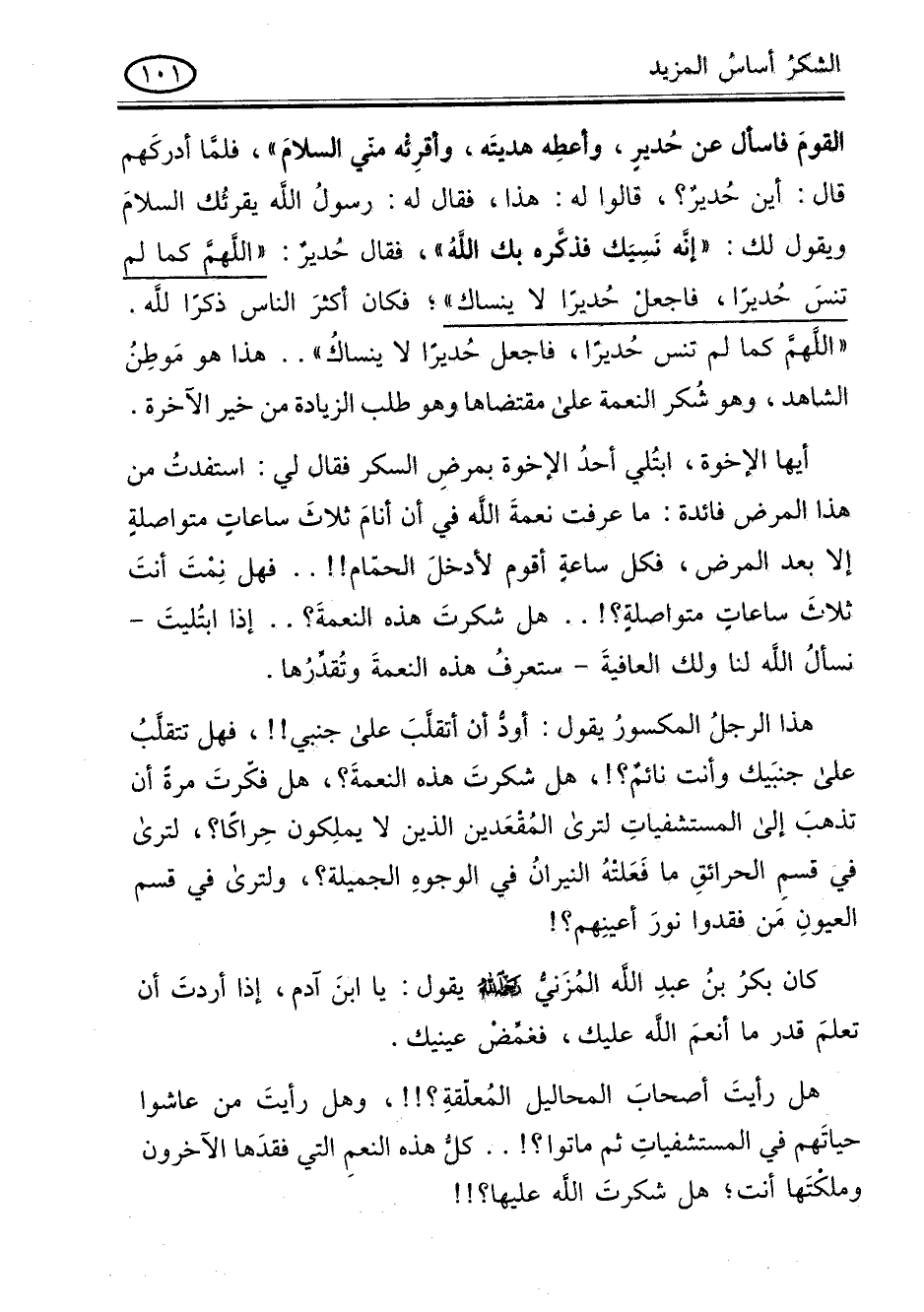 " اللهم كما لم تنس حديرا فاجعل حديرا لا ينساك " .. هذا هو موطن الشاهد وهو شكر النعمة على مقتضاها وهو طلب الزيادة من خير الاخرة.