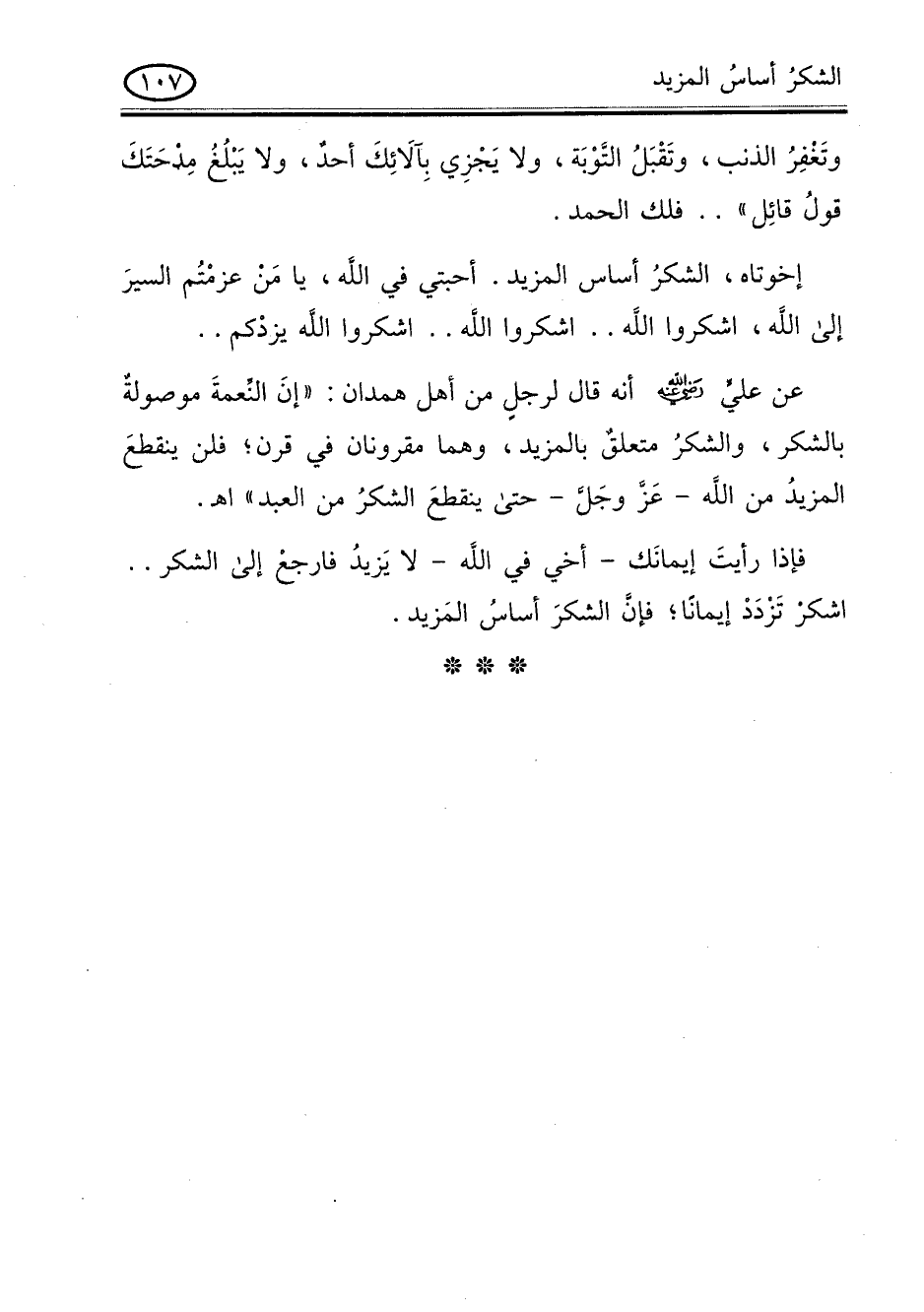 اخوتاه , الشكر أساس المزيد. أحبتى في الله , يا من عزمتم السير إلى الله , اشكروا الله .. اشكروا الله .. اشكروا الله يزدكم ..