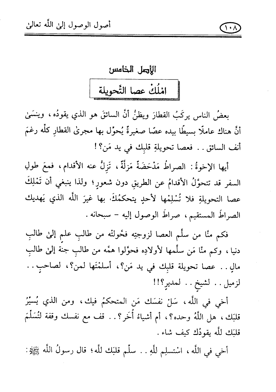أيها الاخوة: الصراط مدحضة مزلة , تزل عنه الاقدام , فمع طول السفر قد تتحول الاقدام عن الطريق دون شعور , ولذا ينبغى أن تملك عصا التحويلة فلا تسلمها لأحد يتحكمك بها غير الله الذي يهديك الصراط المستقيم , صراط الوصول إليه - سبحانه -.