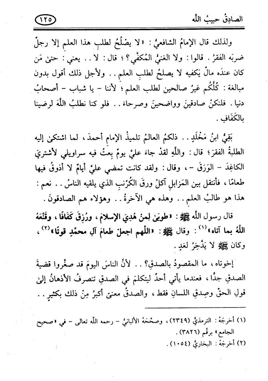ولذلك قال الامام الشافعى " لا يصلح لطلب هذا العلم الا رجل ضربه الفقر. قالوا: ولا الغنى المكفّى؟ قال: لا .. يعنى: حتى من كان عنده مال يكفيه لا يصلح لطلب العلم .. ولأجل ذلك أقول بدون مبالغة: كلكم غير صالحين لطلب العلم , لأننا - يا شباب - أصحاب دنيا. فلنكن صادقين وواضحين وصرحاء .. فلو كنا نطلب الله لرضينا بالكفاف.