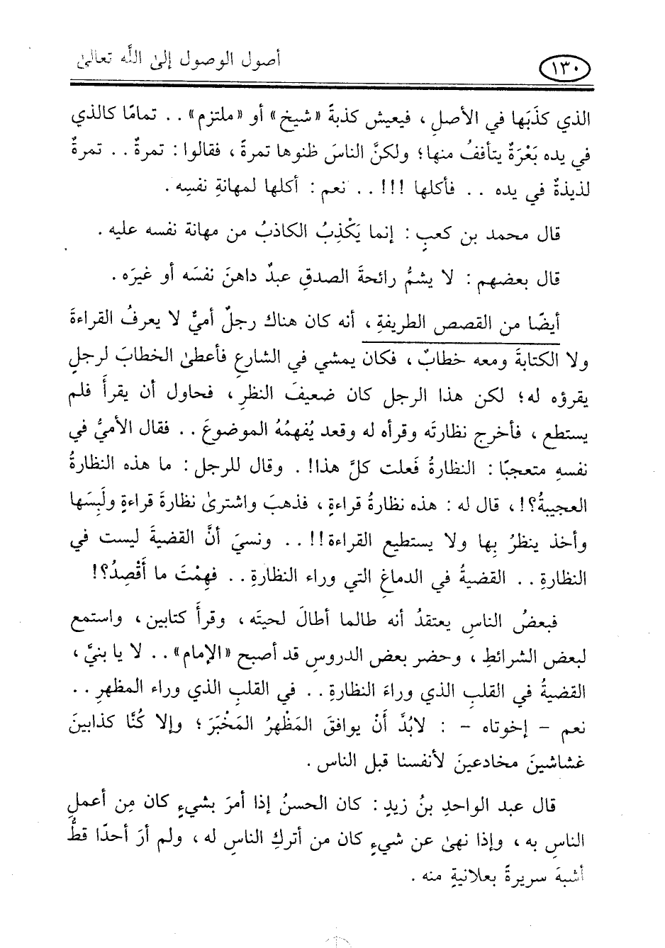 فبعض الناس يعتقد أنه طالما أطال لحيته , وقرأ كتابين , واستمع لبعض الشرائط , وحضر بعض الدروس قد أصبح " الامام " .. لا يا بنىّ , القضية فى القلب الذى وراء النظارة .. فى القلب الذى وراء المظهر .. نعم - إخوتاه -: لابد أن يوافق المظهر المخبر , والا كنا كذابين غشاشين مخادعين لأنفسنا قبل الناس.