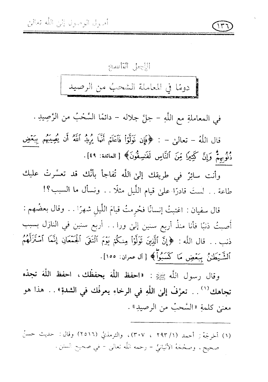 وقال رسول الله صلى الله عليه وسلم: "احفظ الله يحفظك , احفظ الله تجده تجاهك .. تعرف الى الله فى الرخاء يعرفك فى الشدة " .. هذا هو معنى كلمة " السحب من الرصيد ".