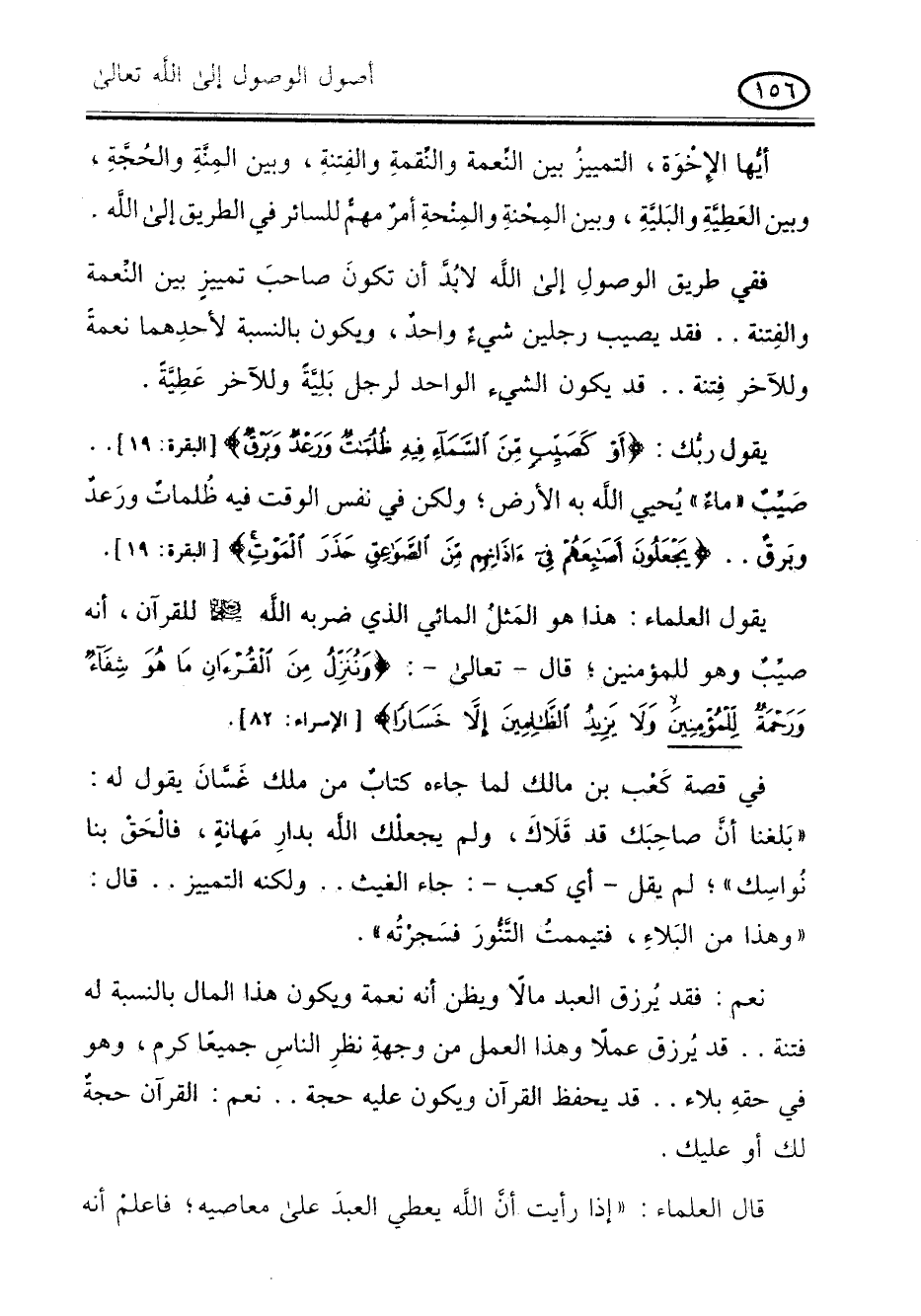 ففى طريق الوصول إلى الله لابد أن تكون صاحب تمييز بين النعمة والفتنة .. فقد يصيب رجلين شىء واحد , ويكون بالنسبة لأحدهما نعمة وللآخر فتنة .. قد يكون الشىء الواحد لرجل بلية وللآخر عطية.