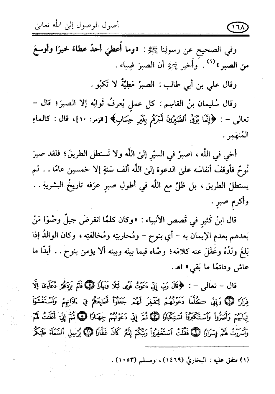 أخى فى الله , اصبر فى السير إلى الله ولا تستطل الطريق , فلقد صبر نوح فأوقف أنفاسه على الدعوة إلى الله ألف سنة إلا خمسين عاما .. لم يستطل الطريق , بل ظل مع الله فى أطول صبر عرفه تاريخ البشرية .. وأكرم صبر.