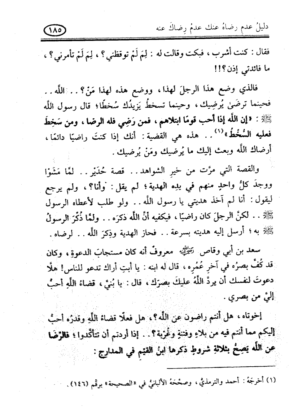 إخوتاه , هل أنتم راضون عن الله؟ , هل فعلا قضاء الله وقدره أحب إليكم مما أنتم فيه من بلاء وفتنة وغربة؟ .. إذا أردتم أن تتأكدوا , فالرضا عن الله يصح بثلاثة شروط ذكرها ابن القيم فى المدارج: