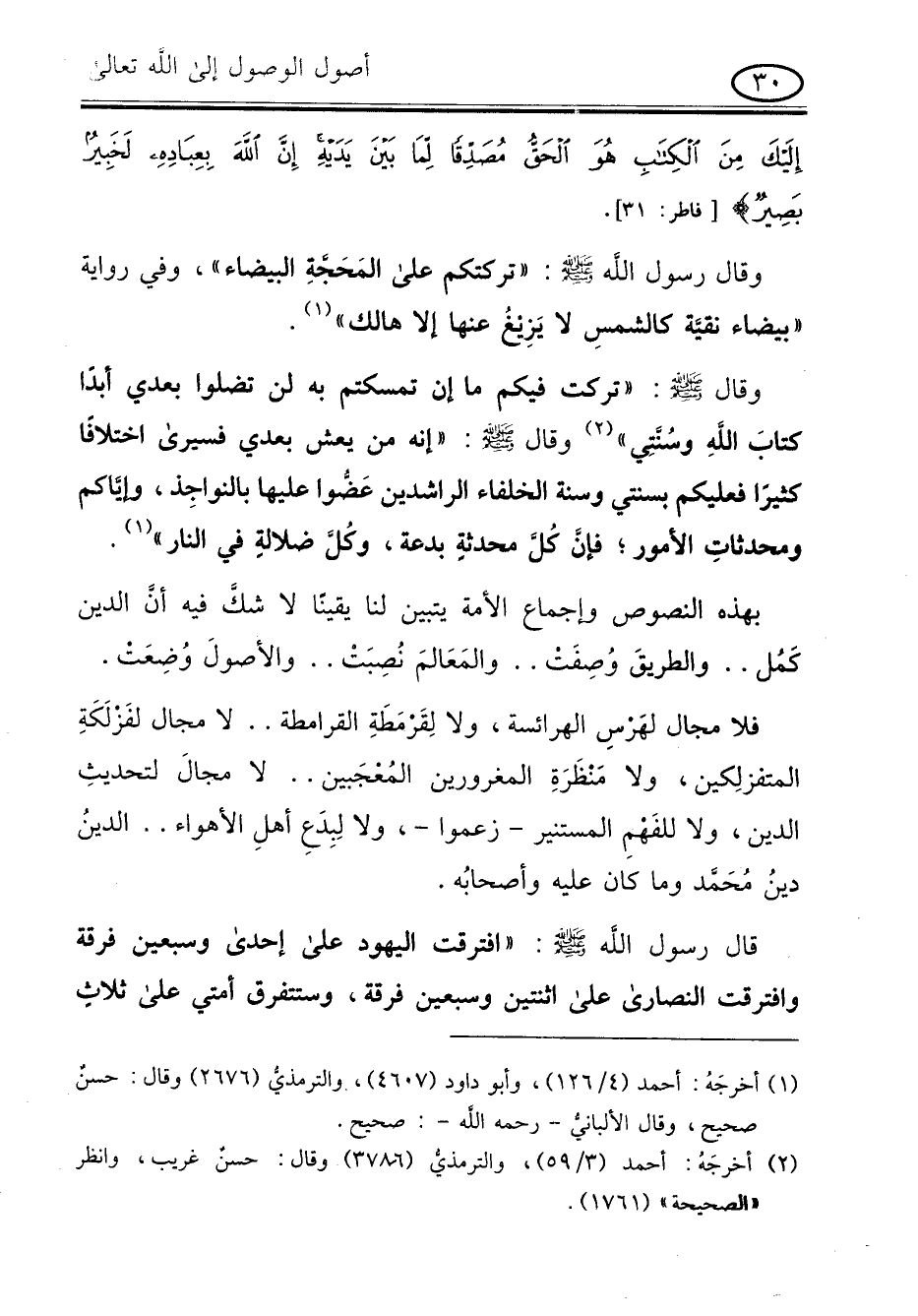 أبو داود: (4607) بهذه النصوص واجماع الأمة يتبين لنا يقينا لا شك فيه أن الدين كمل والطريق وصفت والمعالم نصبت والاصول وضعت.