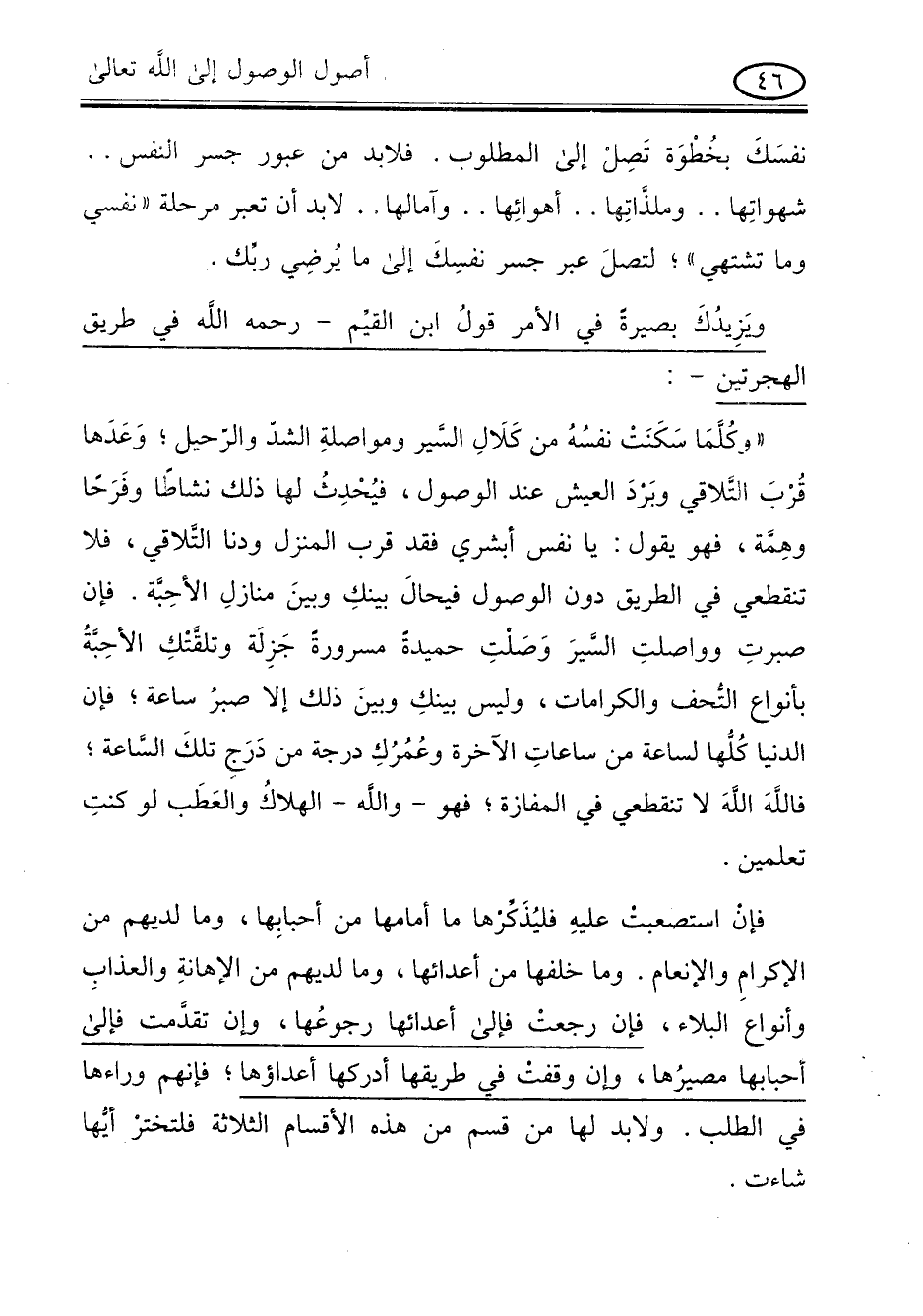 ويزيدك بصيرة في الامر قول ابن القيم - رحمه الله - في طريق الهجرتين: