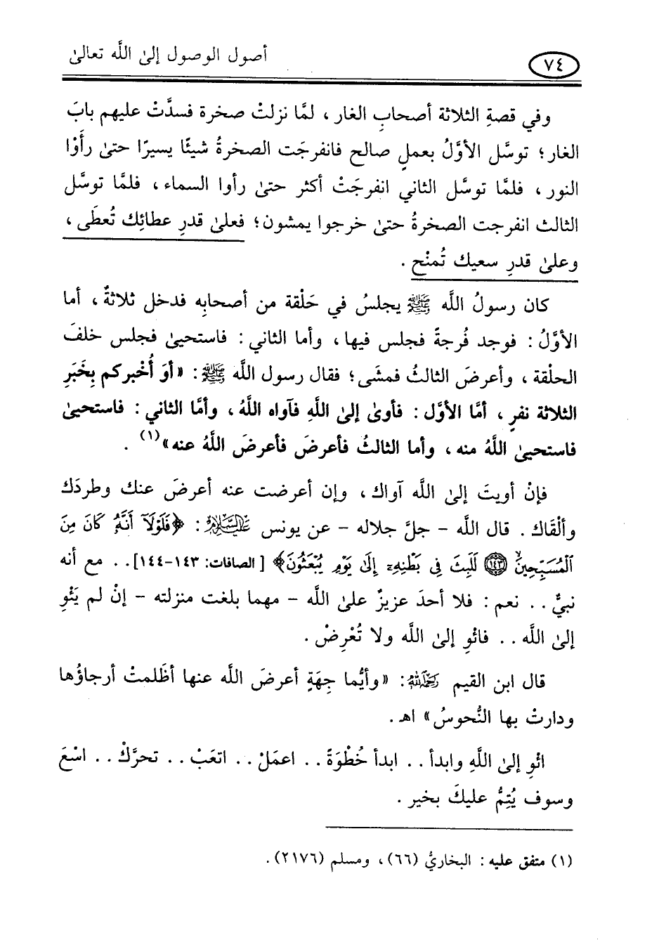 وفى قصة الثلاثة أصحاب الغار , لما نزلت صخرة فسدّت عليهم باب الغار , توسل الأول بعمل صالح فانفرجت الصخرة شيئا يسيرا حتى رأوا النور , فلما توسل الثانى انفرجت أكثر حتى رأوا السماء , فلما توسل الثالث انفرجت الصخرة حتى خرجوا يمشون , فعلى قدر عطائك تعطى , وعلى قدر سعيك تمنح.