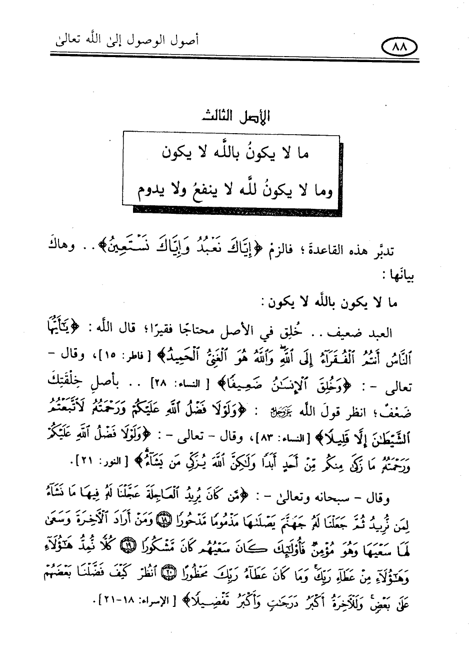 الأصل الثالث: ما لا يكون بالله لا يكون وما لا يكون لله لا ينفع ولا يدوم