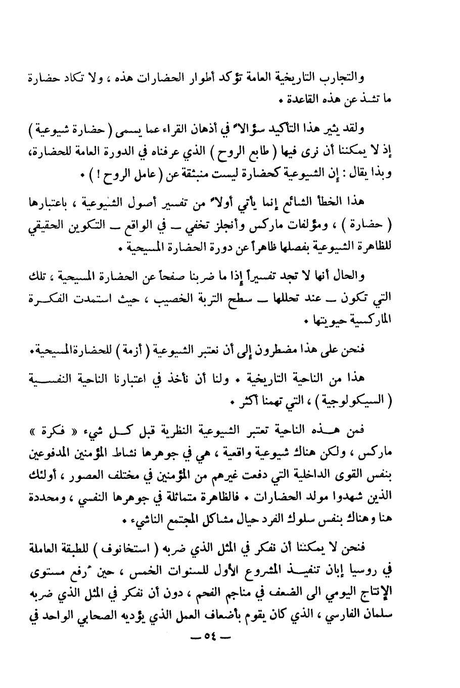 والحال أنها لا تجد تفسيرا اذا ما ضربنا صفحا عن الحضارة المسيحية، تلك التي تكون- عند تحللها- سطح التربة الخصيب، حيث استمدت الفكرة الماركسية حيويتها.
