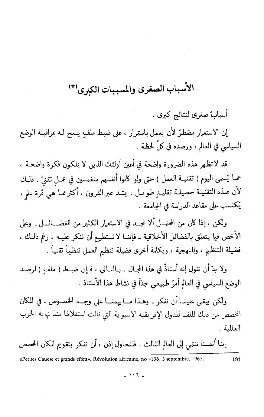 (*) « Petites Causes et grands effets» , Révolution africaine, no =136, 3 septembre, 1965.