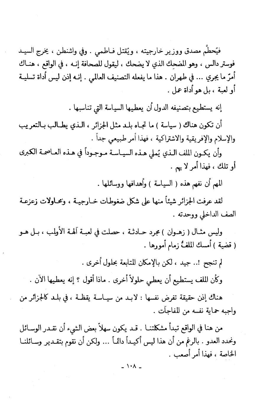 أن تكون هناك (سياسة) ما تجاه بلد مثل الجزائر، الذي يطالب بالتعريب والإسلام والإفريقية والاشتراكية، فهذا أمر طبيعي جدا.