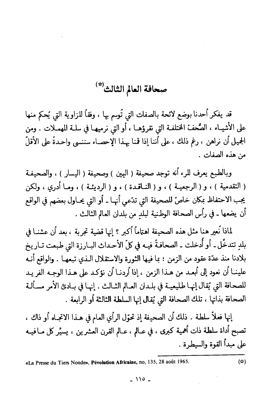 (*) « La Presse du Tiers Monde» , Révolution Africaine, no, 135, 28 août 1965.