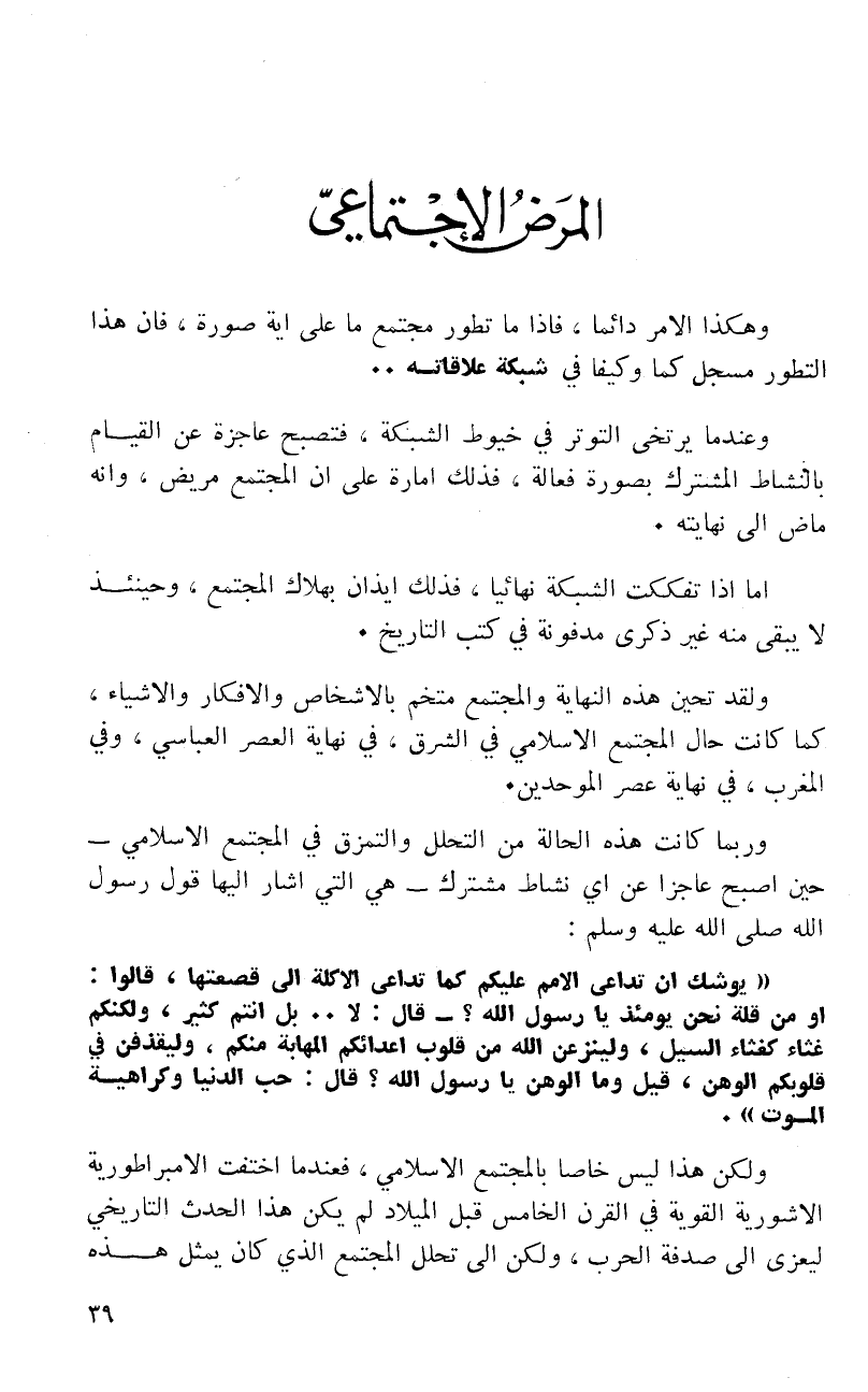 والاضطراب، وهو ما نجده في حالة المجتمع الإسلامي في الأندلس، في العصر المشؤوم المسمى بعصر (ملوك الطوائف).