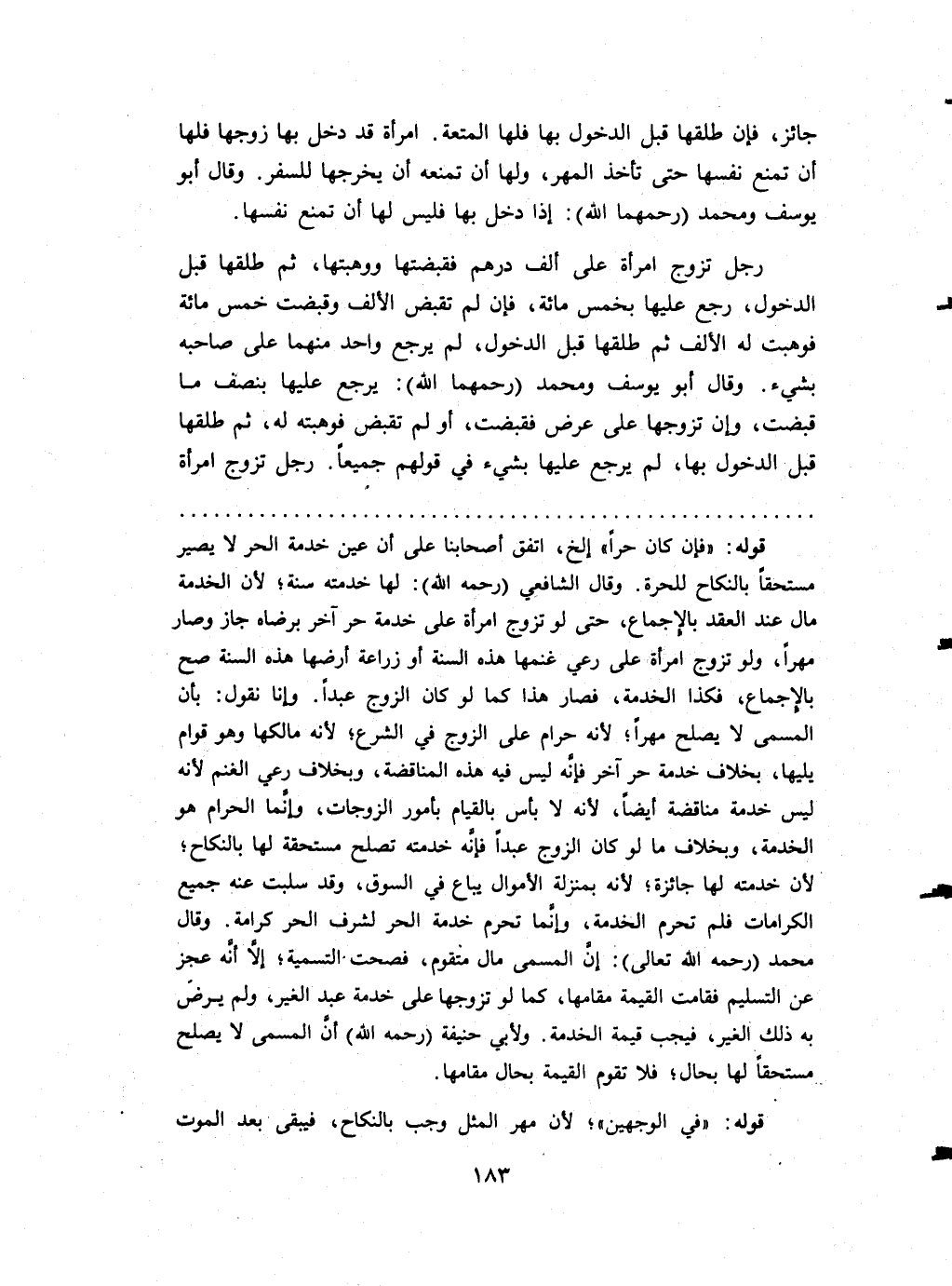 جَائِز فَإِن طَلقهَا قبل الدُّخُول بهَا فلهَا الْمُتْعَة امْرَأَة قد دخل بهَا فلهَا أَن تمنع نَفسهَا حَتَّى تَأْخُذ الْمهْر وَلها أَن تَمنعهُ أَن يُخرجهَا للسَّفر وَقَالَ أَبُو يُوسُف وَمُحَمّد (رحمهمَا الله) إِذا دخل بهَا فَلَيْسَ لَهَا أَن تمنع نَفسهَا