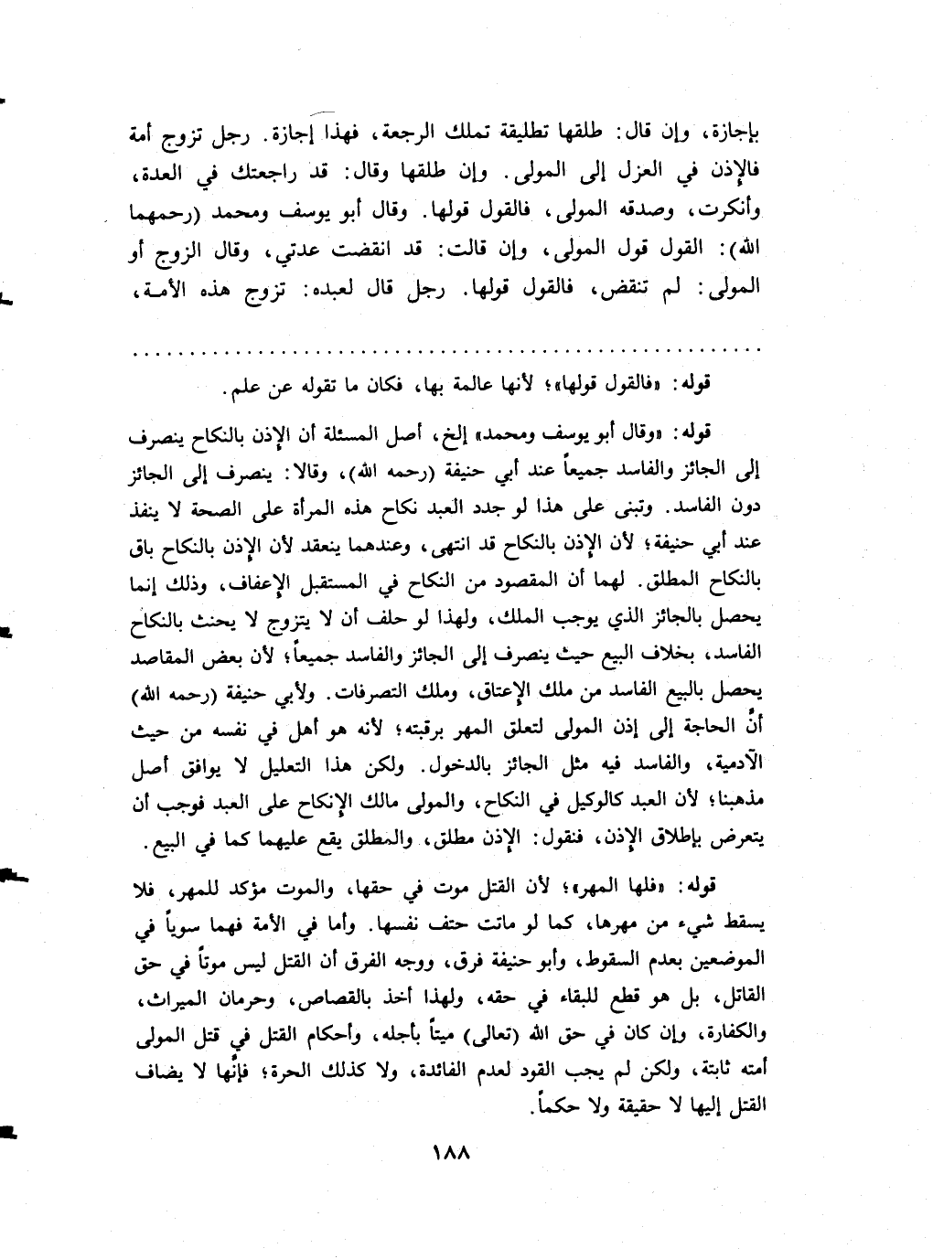 قَوْله وَقَالَ ابو يُوسُف ومحمدالخ أصل المسئلة أَن الْإِذْن بِالنِّكَاحِ ينْصَرف إِلَى الْجَائِز وَالْفَاسِد جَمِيعًا عندا أبي حنيفَة (رَحمَه الله) وَقَالا ينْصَرف إِلَى الْجَائِز دون الْفَاسِد وتبنى على هَذَا لَو جدد العَبْد نِكَاح هَذِه الْمَرْأَة على الصِّحَّة لَا ينفذ عِنْد أبي حنيفَة لِأَن الْإِذْن بِالنِّكَاحِ قد انْتهى وَعِنْدَهُمَا ينْعَقد لِأَن الْإِذْن بِالنِّكَاحِ بَاقٍ بِالنِّكَاحِ الْمُطلق لَهما أَن الْمَقْصُود من النِّكَاح فِي الْمُسْتَقْبل الإعفاف وَذَلِكَ إِنَّمَا يحصل بالجائز الَّذِي يُوجب الْملك وَلِهَذَا لَو حلف أَن لَا يتَزَوَّج لَا يَحْنَث بِالنِّكَاحِ الْفَاسِد بِخِلَاف البيع حَيْثُ ينْصَرف إِلَى الْجَائِز وَالْفَاسِد جَمِيعًا لَان بعض الْمَقَاصِد بحصل بِالْبيعِ الْفَاسِد من ملك الْإِعْتَاق وَملك التَّصَرُّفَات وَلأبي حنيفَة (رَحمَه الله) أَن الْحَاجة إِلَى إِذن الْمولى لتَعلق الْمهْر بِرَقَبَتِهِ لِأَنَّهُ هُوَ أهل فِي نَفسه من حَيْثُ الْآدَمِيَّة وَالْفَاسِد فِيهِ مثل الْجَائِز بِالدُّخُولِ وَلَكِن هَذَا التَّعْلِيل لَا يُوَافق أصل مَذْهَبنَا لِأَن العَبْد كَالْوَكِيلِ فِي النِّكَاح وَالْمولى مَالك الْإِنْكَاح على العَبْد فَوَجَبَ أَن يتَعَرَّض بِإِطْلَاق الْإِذْن فَنَقُول الْإِذْن مُطلق وَالْمُطلق يَقع عَلَيْهِمَا كَمَا فِي البيع