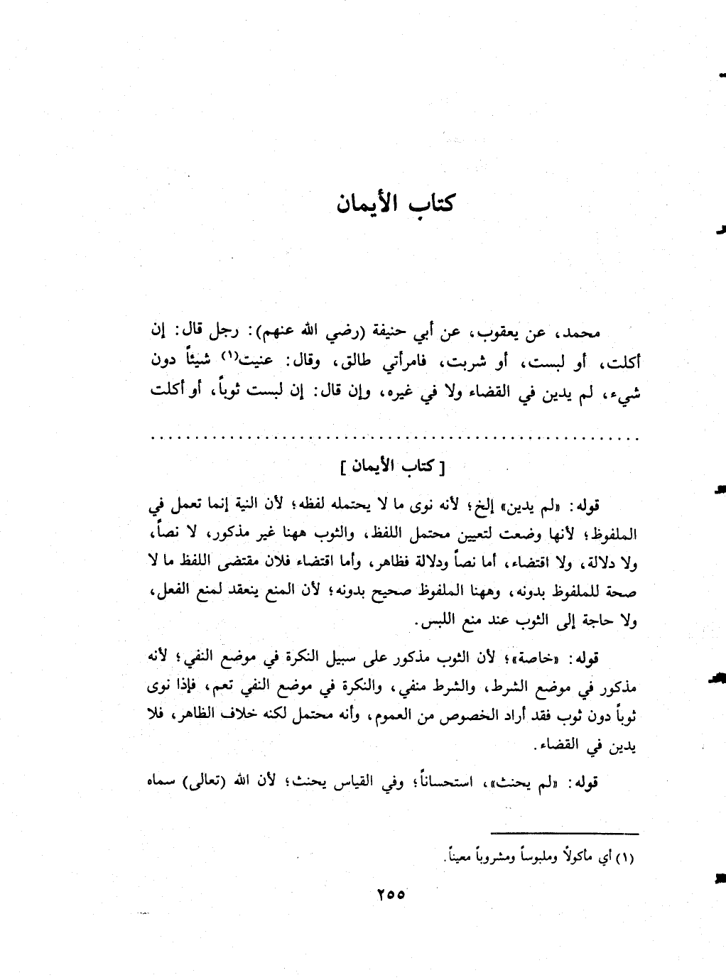 مُحَمَّد عَن يَعْقُوب عَن أبي حنيفَة (رَضِي الله عَنْهُم) رجل قَالَ إِن أكلت أَو لبست أَو شربت فامرأتي طَالِق وَقَالَ عنيت شَيْئا دون شَيْء لم يدين فِي الْقَضَاء وَلَا فِي غَيره وَإِن قَالَ إِن لبست ثوبا أَو أكلت