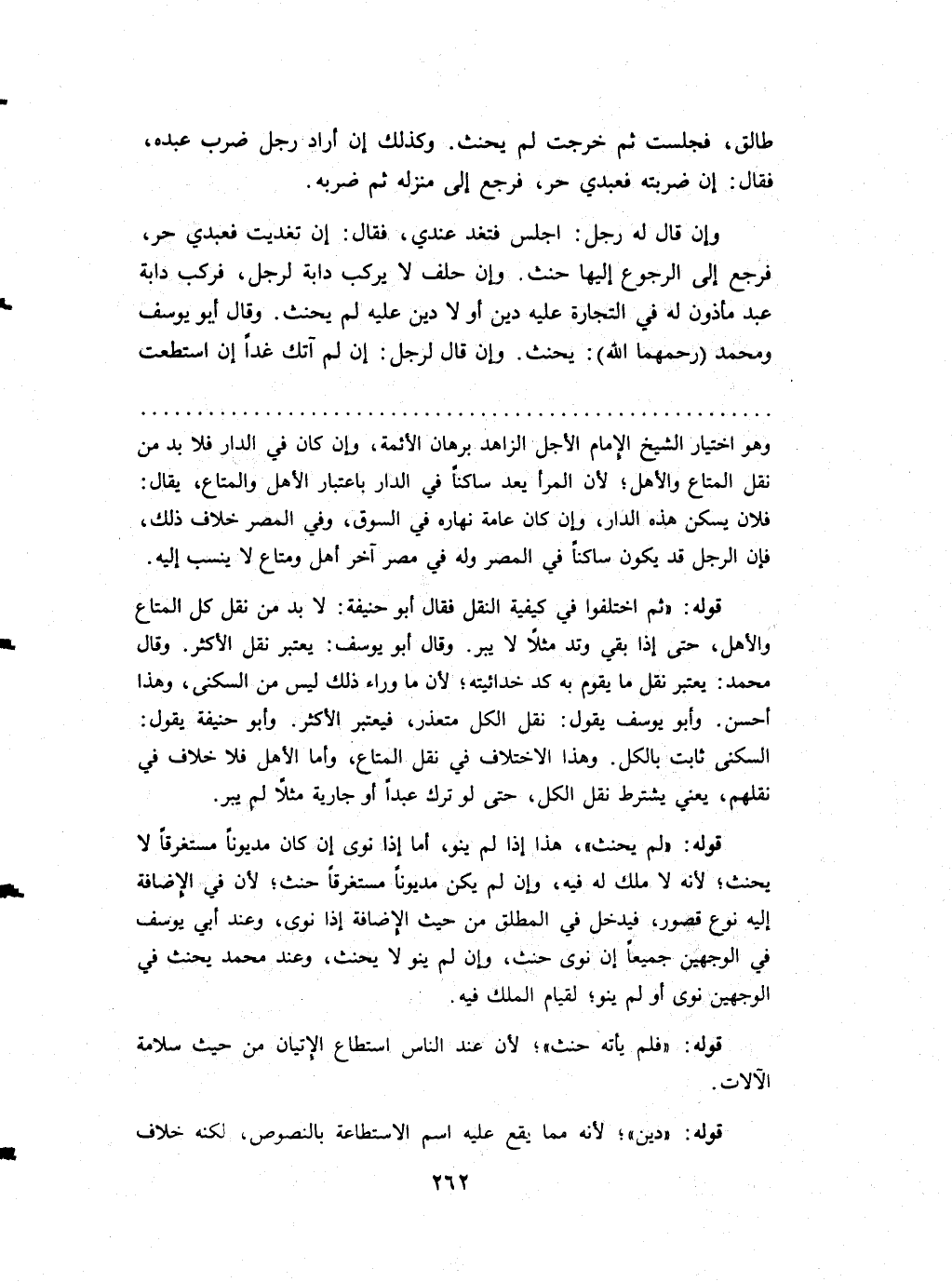 قَوْله لم يَحْنَث هَذَا إِذا لم ينْو أما إِذا نوى إِن كَانَ مديوناً مُسْتَغْرقا لَا يَحْنَث لِأَنَّهُ لَا ملك لَهُ فِيهِ وان لم يكن مديونا مستغراقا حنث لِأَن فِي الْإِضَافَة إِلَيْهِ نوع قُصُور فَيدْخل فِي الْمُطلق من حَيْثُ الْإِضَافَة إِذا نوى وَعند أبي يُوسُف فِي الْوَجْهَيْنِ جَمِيعًا إِن نوى حنث وَإِن لم ينْو لَا يَحْنَث وَعند مُحَمَّد يَحْنَث فِي الْوَجْهَيْنِ نوى أَو لم ينْو لقِيَام الْملك فِيهِ