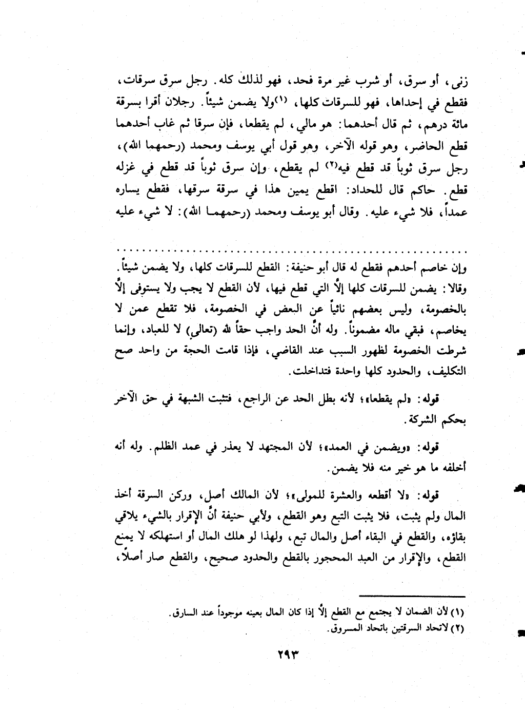 زنى أَو سرق أَو شرب غير مرّة فحد فَهُوَ لذَلِك كُله رجل سرق سرقات ن فَقطع فِي إِحْدَاهَا فَهُوَ للسرقات كلهَا وَلَا يضمن شَيْئا رجلَانِ أقرا بِسَرِقَة مائَة دِرْهَم ثمَّ قَالَ أَحدهمَا هُوَ مَالِي لم يقطعا فَإِن سرقا ثمَّ غَابَ أَحدهمَا قطع الْحَاضِر وَهُوَ الآخر وَهُوَ قَول أبي يُوسُف وَمُحَمّد (رحمهمَا الله) رجل سرق ثوبا قد قطع فِيهِ لم يقطع وَإِن سرق ثوبا قد قطع فِي غزله قطع حَاكم قَالَ للحداد اقْطَعْ يَمِين هَذَا فِي سَرقَة سَرَقهَا فَقطع يسَاره عمدا فَلَا شَيْء عَلَيْهِ وَقَالَ أَبُو يُوسُف وَمُحَمّد (رحمهمَا الله) لَا شَيْء عَلَيْهِ