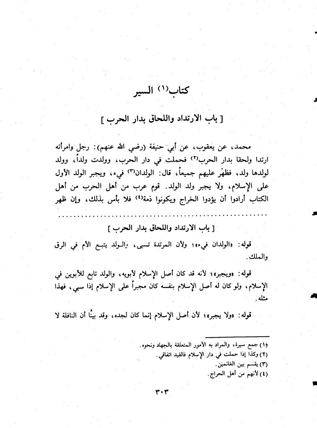 مُحَمَّد عَن يَعْقُوب عَن أبي حنيفَة (رَضِي الله عَنْهُم) رجل وَامْرَأَته ارتدا ولحقا بدار الْحَرْب فَحملت فِي دَار الْحَرْب وَولدت ولدا وَولد لولدها ولد فَظهر عَلَيْهِم جَمِيعًا قَالَ الْولدَان فَيْء وَيجْبر الْوَلَد الأول على الْإِسْلَام وَلَا يجْبر ولد الْوَلَد قوم عرب من أهل الْحَرْب من أهل الْكتاب أَرَادوا أَن يؤدوا الْخراج ويكونوا ذمَّة فَلَا بَأْس بذلك وَإِن ظهر