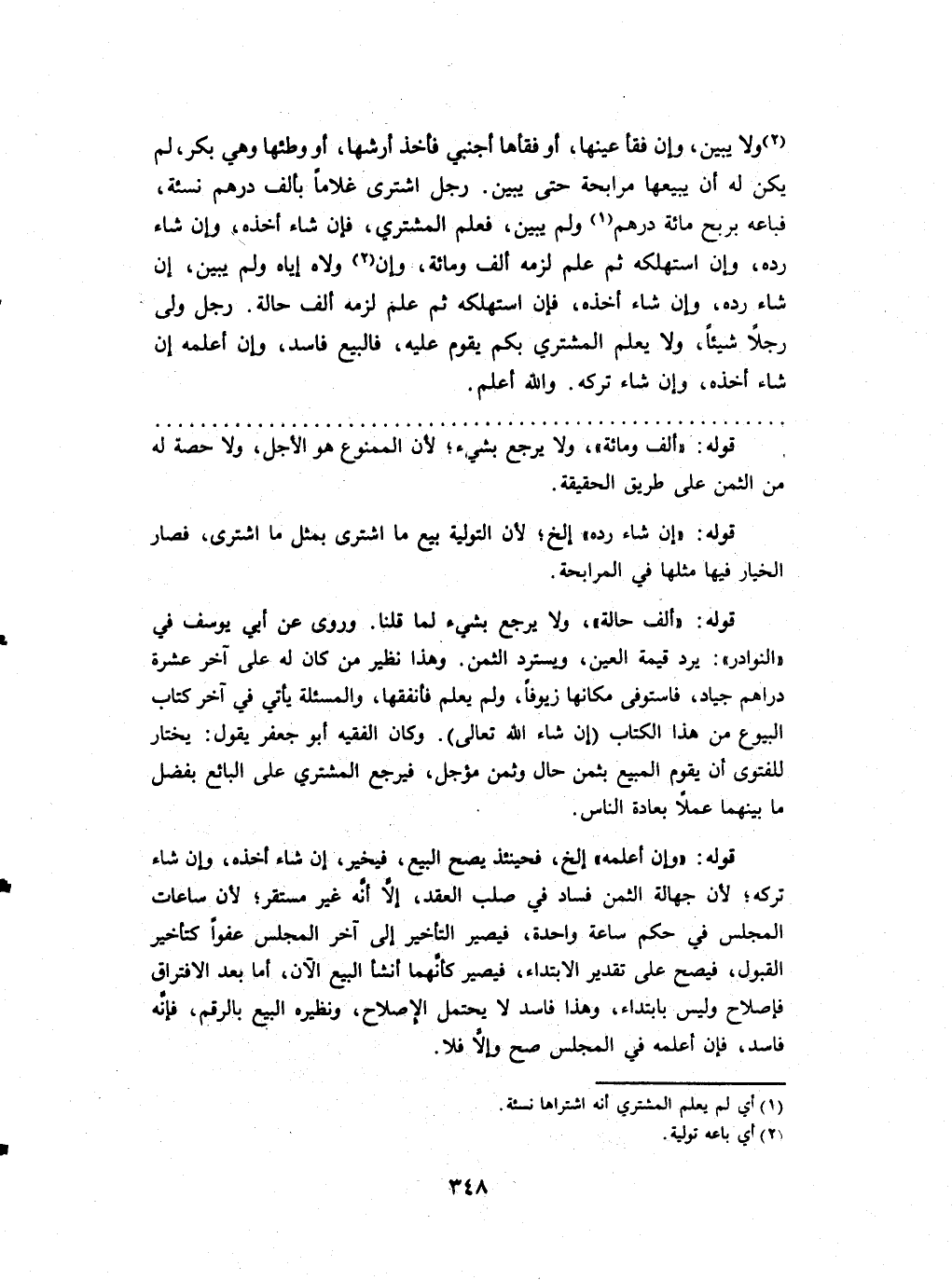وَلَا يبين وَإِن فَقَأَ عينهَا أَو فقأها أَجْنَبِي فَأخذ أَرْشهَا أَو وَطئهَا وَهِي بكر لم يكن لَهُ أَن يَبِيعهَا مُرَابحَة حَتَّى يبين رجل اشْترى غُلَاما بِأَلف دِرْهَم نسئة فَبَاعَهُ بِرِبْح مائَة دِرْهَم وَلم يبين فَعلم المُشْتَرِي فَإِن شَاءَ أَخذه وَإِن شَاءَ رده وَإِن اسْتَهْلكهُ ثمَّ علم لزمَه ألف وَمِائَة وان ولاه اياه وَلم يبين وان شاءه رده وَإِن شَاءَ أَخذه فَإِن اسْتَهْلكهُ ثمَّ علم لزمَه ألف حَالَة رجل ولى رجلا شَيْئا وَلَا يعلم المُشْتَرِي بكم يقوم عَلَيْهِ فَالْبيع فَاسد وَإِن أعلمهُ إِن شَاءَ أَخذه وان شَاءَ تَركه وَالله اعْلَم