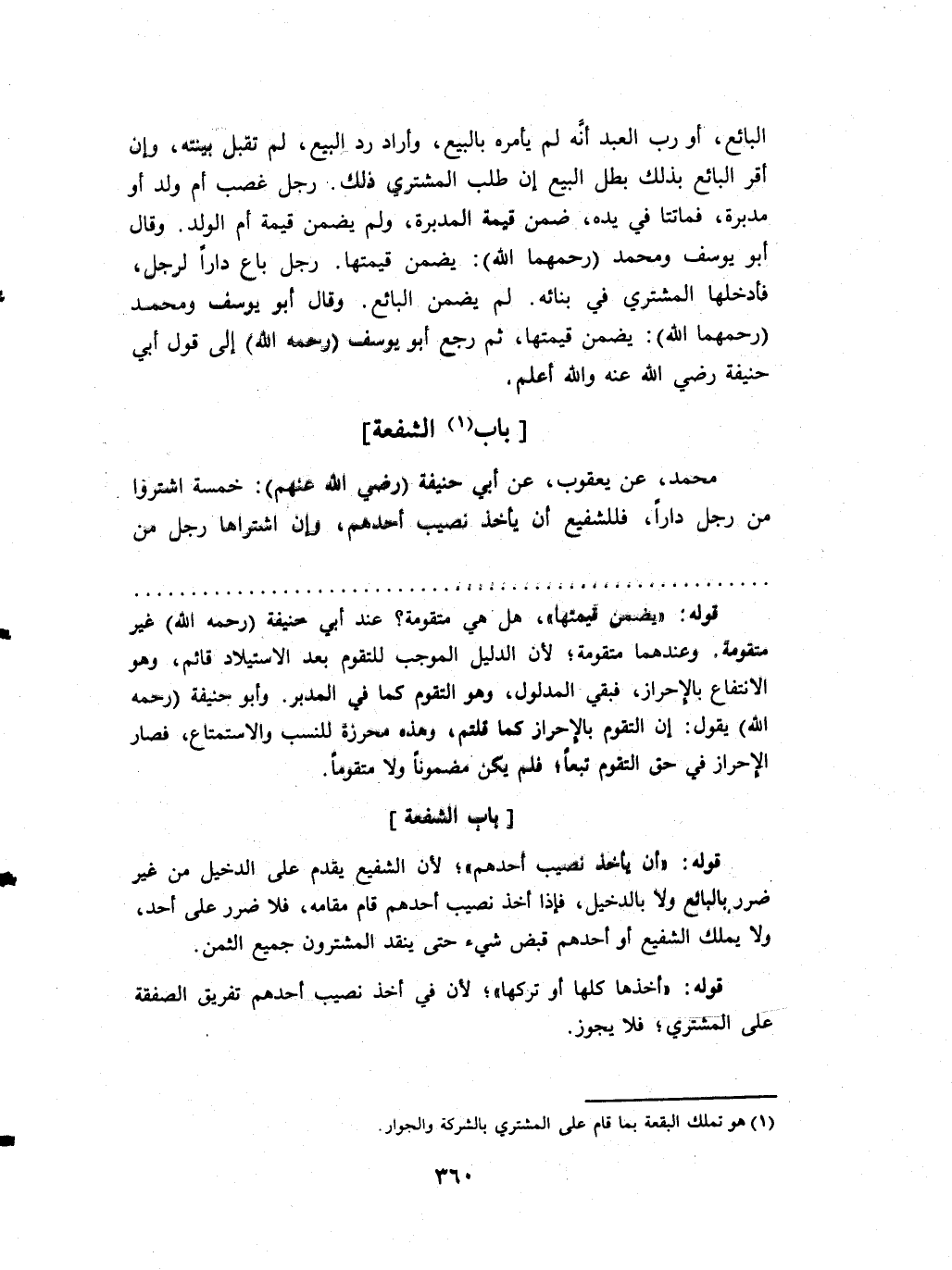 مُحَمَّد عَن يَعْقُوب عَن أبي حنيفَة (رَضِي الله عَنْهُم) خَمْسَة اشْتَروا من رجل دَارا فَللشَّفِيع أَن يَأْخُذ نصيب أحدهم وَإِن اشْتَرَاهَا رجل من