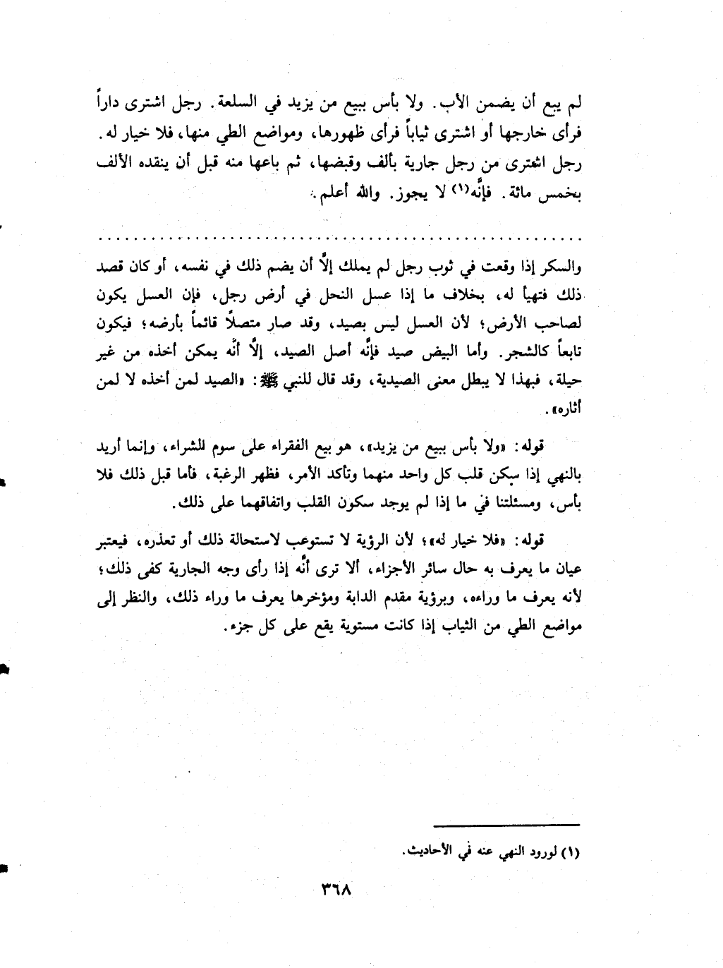 لم يبع أَن يضمن الْأَب وَلَا بَأْس بِبيع من يزِيد فِي السّلْعَة رجل اشْترى دَارا فَرَأى خَارِجهَا أَو اشْترى ثيابًا فَرَأى ظُهُورهَا ومواضع الطي مِنْهَا فَلَا خِيَار لَهُ رجل اشْترى من رجل جَارِيَة بِأَلف وَقَبضهَا ثمَّ بَاعهَا مِنْهُ قبل أَن ينقده الْألف بِخمْس مائَة فَإِنَّهُ لَا يجوز وَالله أعلم