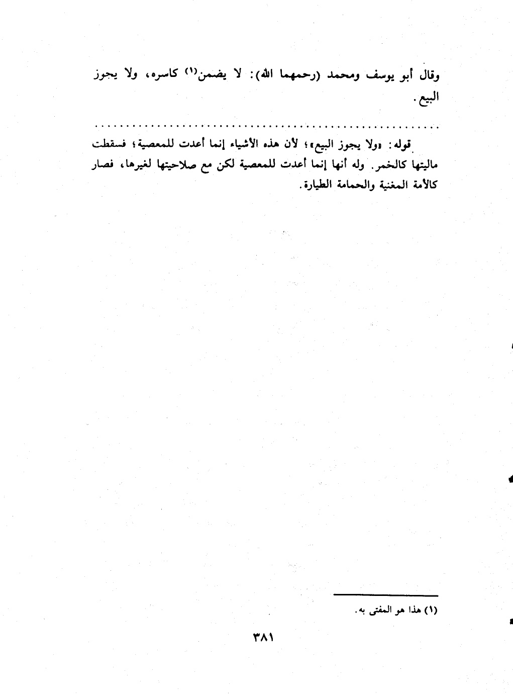 وَقَالَ أَبُو يُوسُف وَمُحَمّد (رحمهمَا الله) لَا يضمن كاسره وَلَا يجوز البيع
