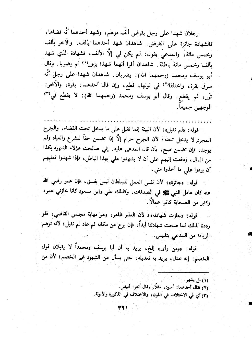 رجلَانِ شَهدا على رجل بقرض ألف دِرْهَم وَشهد أَحدهمَا أَنه قَضَاهَا فالشهادة جَائِزَة على الْقَرْض شَاهِدَانِ شهد أَحدهمَا بِأَلف وَالْآخر بِأَلف وَخمْس مائَة وَالْمُدَّعِي يَقُول لم يكن لي إِلَّا الْألف فشهادة الَّذِي شهد بِأَلف وَخمْس مائَة بَاطِلَة شَاهِدَانِ أقرا أَنَّهُمَا شَهدا يزور لم يضربا وَقَالَ أَبُو يُوسُف وَمُحَمّد (رحمهمَا الله) يضربان شَاهِدَانِ شَهدا على رجل أَنه سرق بقرة وَاخْتلفَا فِي لَوْنهَا قطع وَإِن قَالَ أَحدهمَا بقرة وَالْآخر ثَوْر لم يقطع وَقَالَ أَبُو يُوسُف وَمُحَمّد (رحمهمَا الله) لَا يقطع فِي الْوَجْهَيْنِ جَمِيعًا
