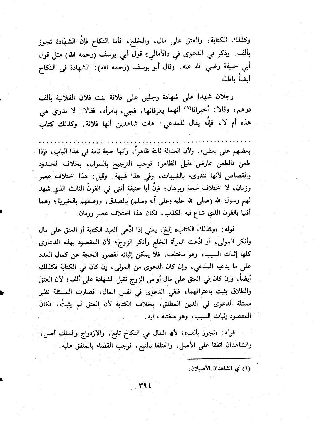 وَكَذَلِكَ الْكِتَابَة وَالْعِتْق على مَال وَالْخلْع فَأَما النِّكَاح فَإِن الشَّهَادَة تجوز بِأَلف وَذكر فِي الدَّعْوَى فِي الأمالي قَول أبي يُوسُف (رَحمَه الله) مثل قَول أبي حنيفَة رَضِي الله عَنهُ وَقَالَ أَبُو يُوسُف (رَحمَه الله) الشَّهَادَة فِي النِّكَاح أَيْضا بَاطِلَة