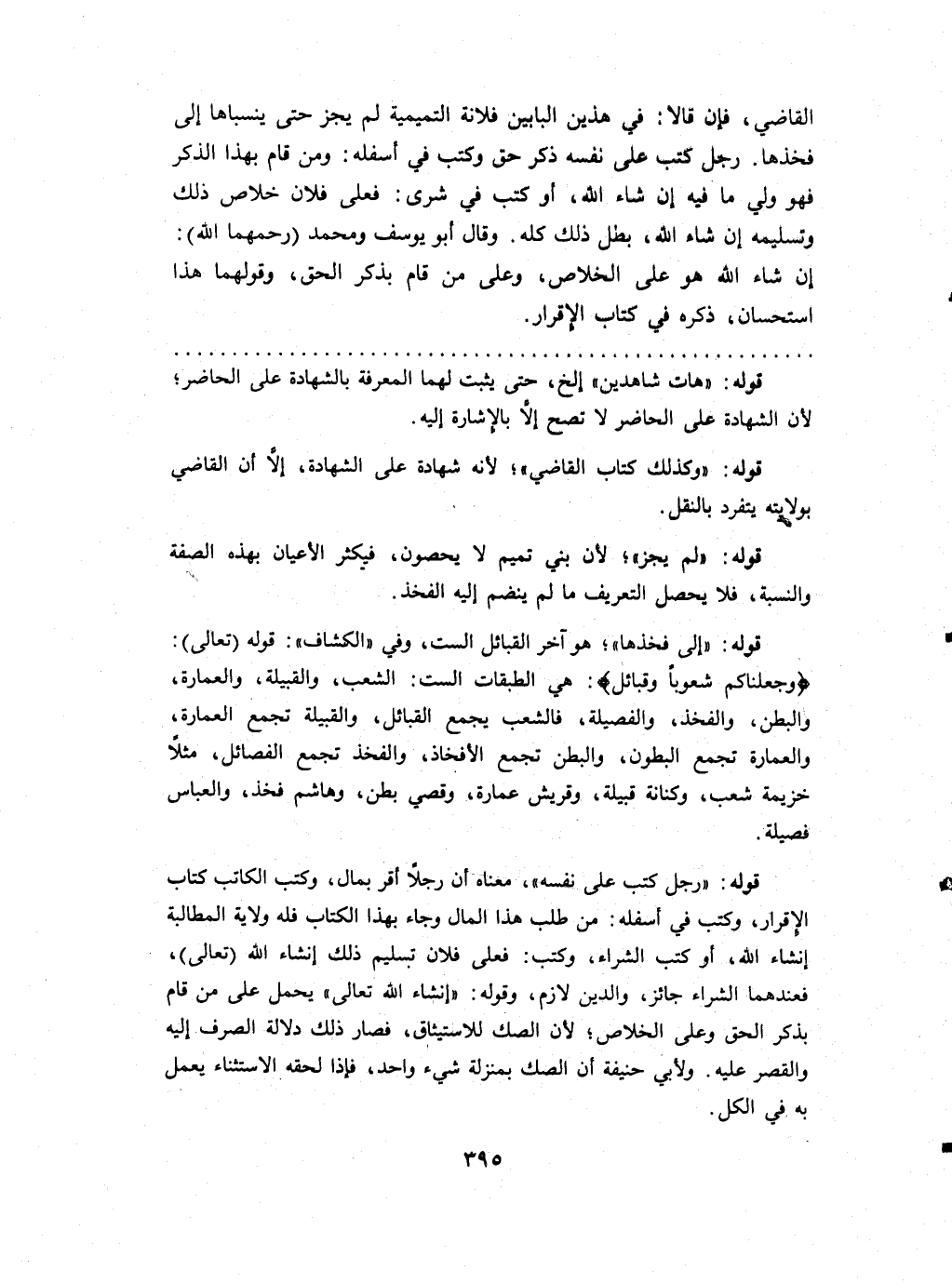 القَاضِي فَإِن قَالَا فِي هذَيْن الْبَابَيْنِ فُلَانَة التميمية لم يجز حَتَّى ينسباها إِلَى فَخذهَا رجل كتب على نَفسه ذكر حق وَكتب فِي أَسْفَله وَمن قَامَ بِهَذَا الذّكر فَهُوَ ولي مَا فِيهِ إِن شَاءَ الله أَو كتب فِي شرى فعلى فلَان خلاص ذَلِك وتسليمه إِن شَاءَ الله بَطل ذَلِك كُله وَقَالَ أَبُو يُوسُف وَمُحَمّد (رحمهمَا الله) إِن شَاءَ الله هُوَ على الْخَلَاص وعَلى من قَامَ بِذكر الْحق وقولهما هَذَا اسْتِحْسَان ذكره فِي كتاب الْإِقْرَار