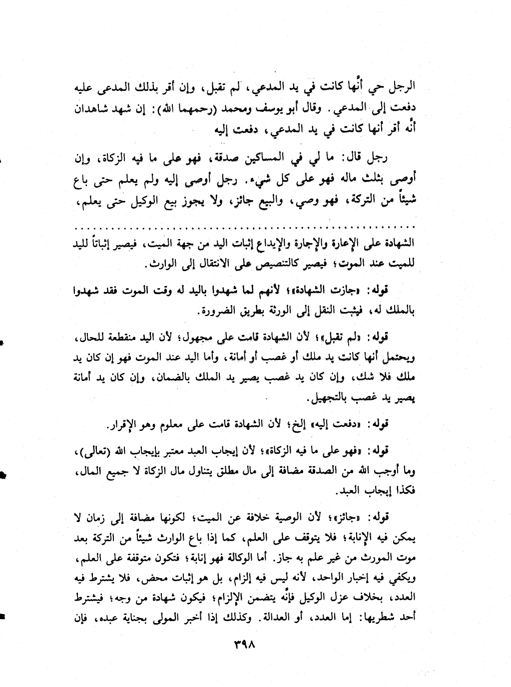 قَوْله جَازَت الشَّهَادَة لأَنهم لما شهدُوا بِالْيَدِ لَهُ وَقت الْمَوْت فقد شهدُوا بِالْملكِ لَهُ فَيثبت النَّقْل إِلَى الْوَرَثَة بطرِيق الضَّرُورَة