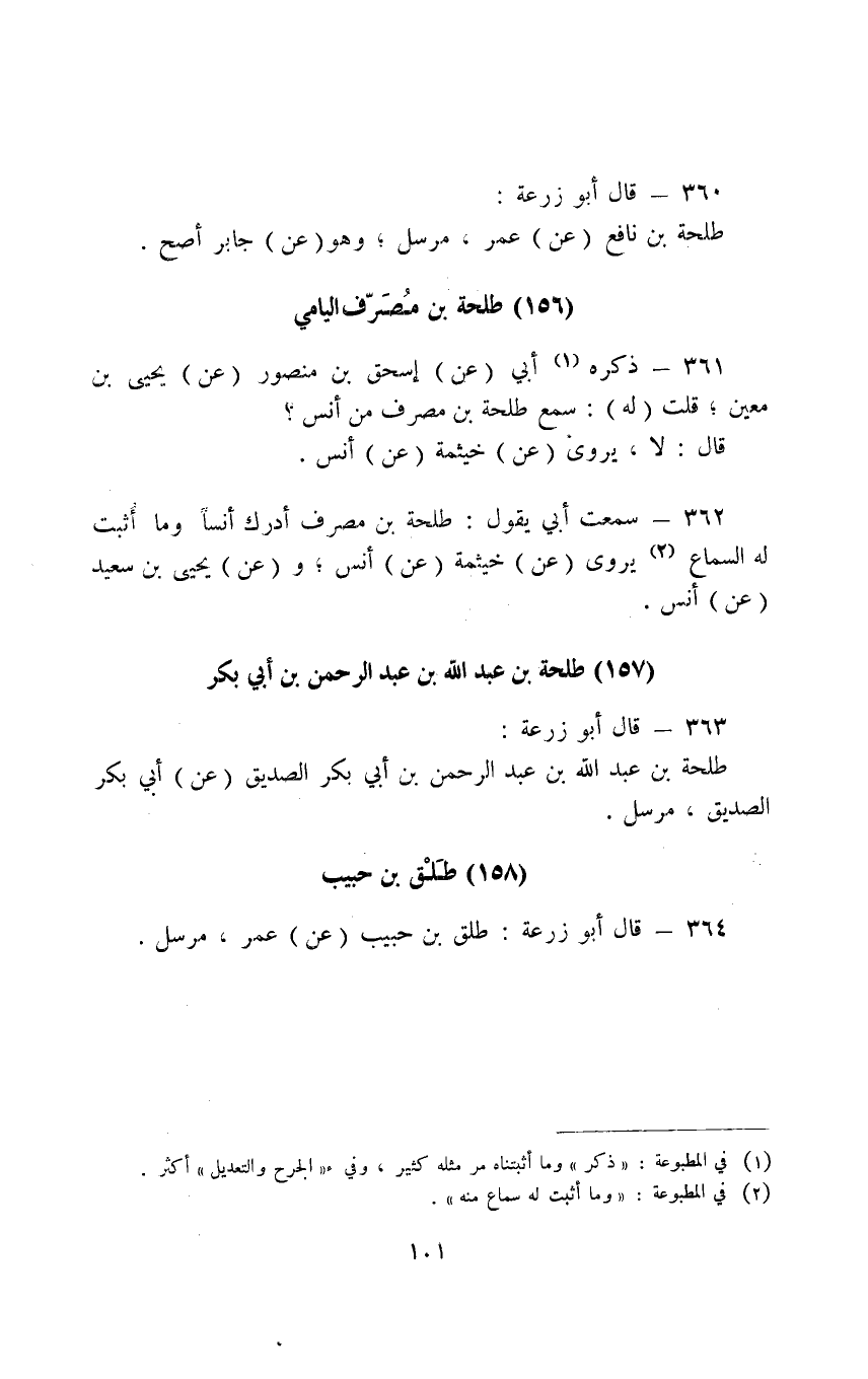363 - قَالَ أَبُو زُرْعَةَ طَلْحَةُ بْنُ عَبْدِ اللَّهِ بْنِ عَبْدِ الرَّحْمَنِ بْنِ أَبِي بَكْرٍ الصِّدِّيقِ عَنْ أَبِي بَكْرٍ الصِّدِّيقِ مُرْسَلٌ